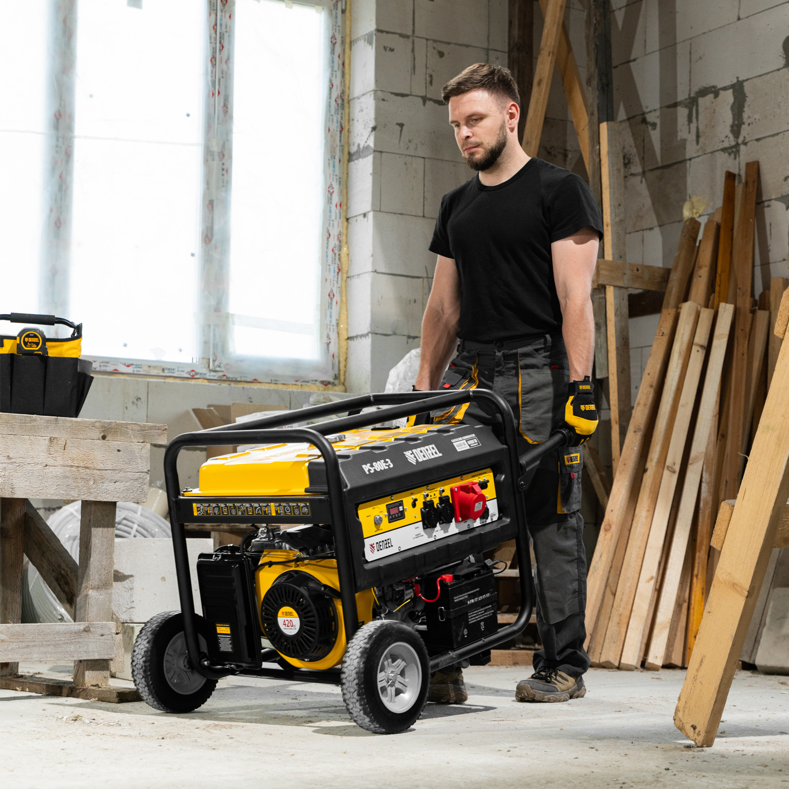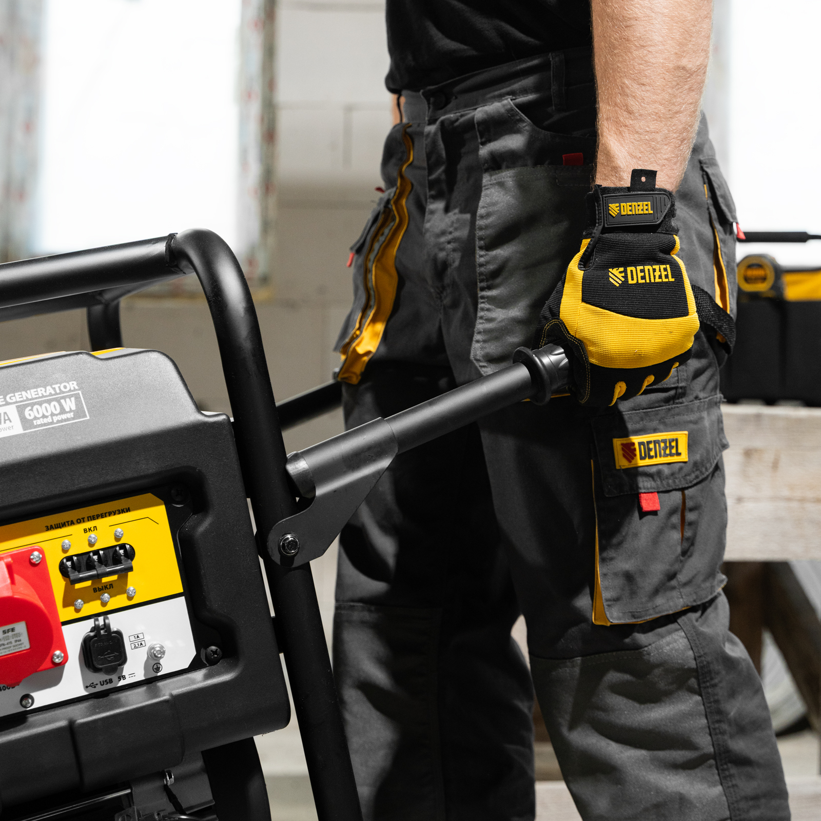<p>Транспортировочный набор Denzel 946725, состоящий из колес и двух рукояток, предназначен для перемещения генераторов серии PS по рабочей площадке. Подходит к генераторным установкам Denzel PS 55 EA, PS 70 EA, PS 80 EA и PS 90 EA (артикулы 946874, 946894, 946924, 946934, 946944, 946954).</p><h2>Преимущества</h2><ul><li>Быстрая подготовка к работе — рукоятки легко собираются, все необходимое для монтажа входит в комплект поставки.</li><li>Удобное использование — транспортировка генератора происходит быстро и без усилий.</li><li>Надежность — элементы комплекта рассчитаны на длительную эксплуатацию.</li></ul>