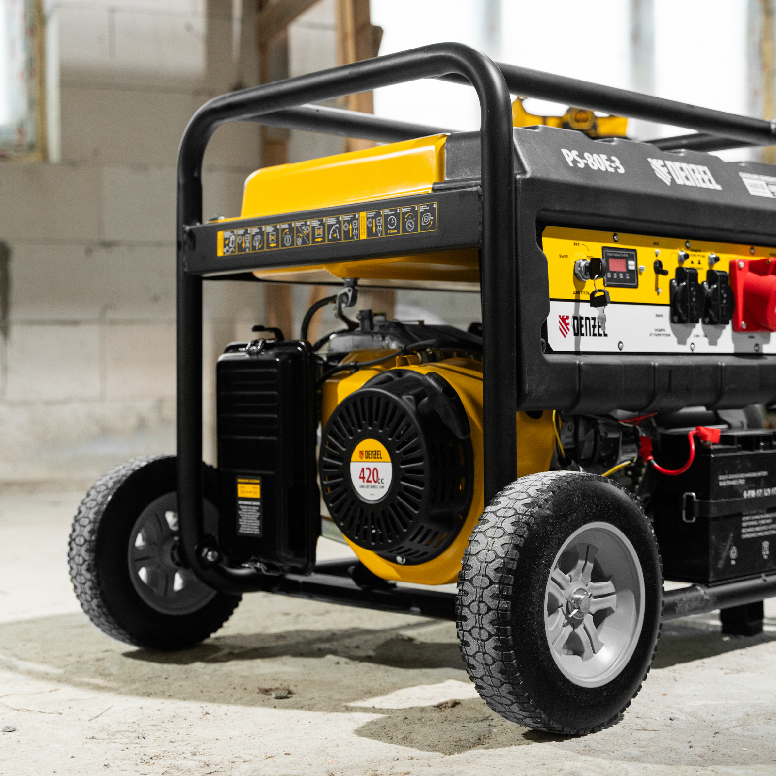 - Удобное использование — транспортировка генератора происходит быстро и без усилий.