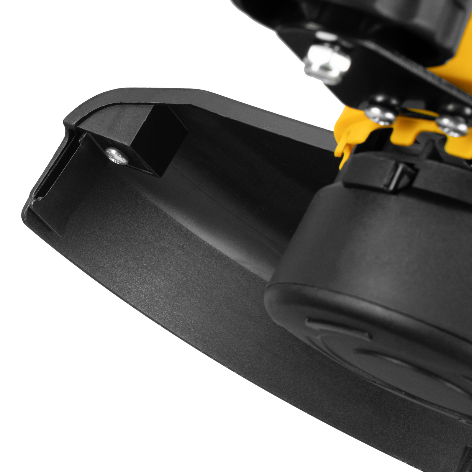 - Продуманная конструкция — опорное колесо обеспечивает удобное и безопасное скашивание травы вдоль стен, бордюров и т.д.