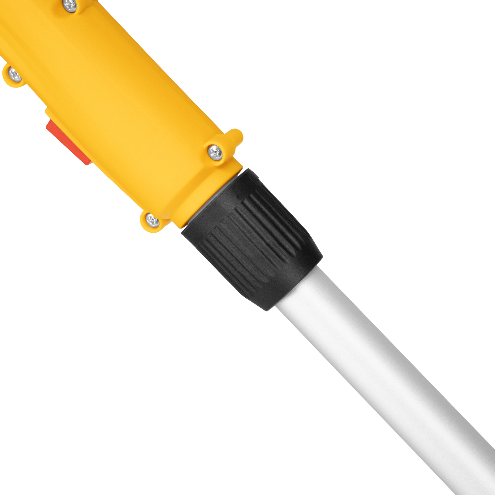 - Надежный хват — дополнительная рукоятка с регулировкой наклона помогает удерживать и направлять триммер.