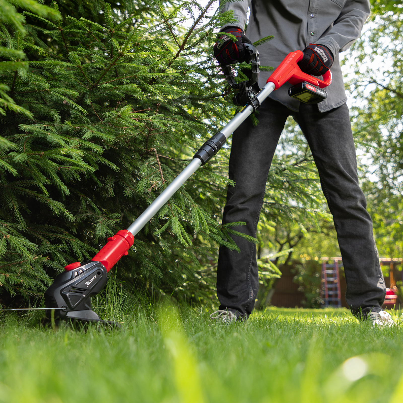 - Комфортная эксплуатация — дополнительная рукоятка позволяет легко удерживать и направлять триммер.