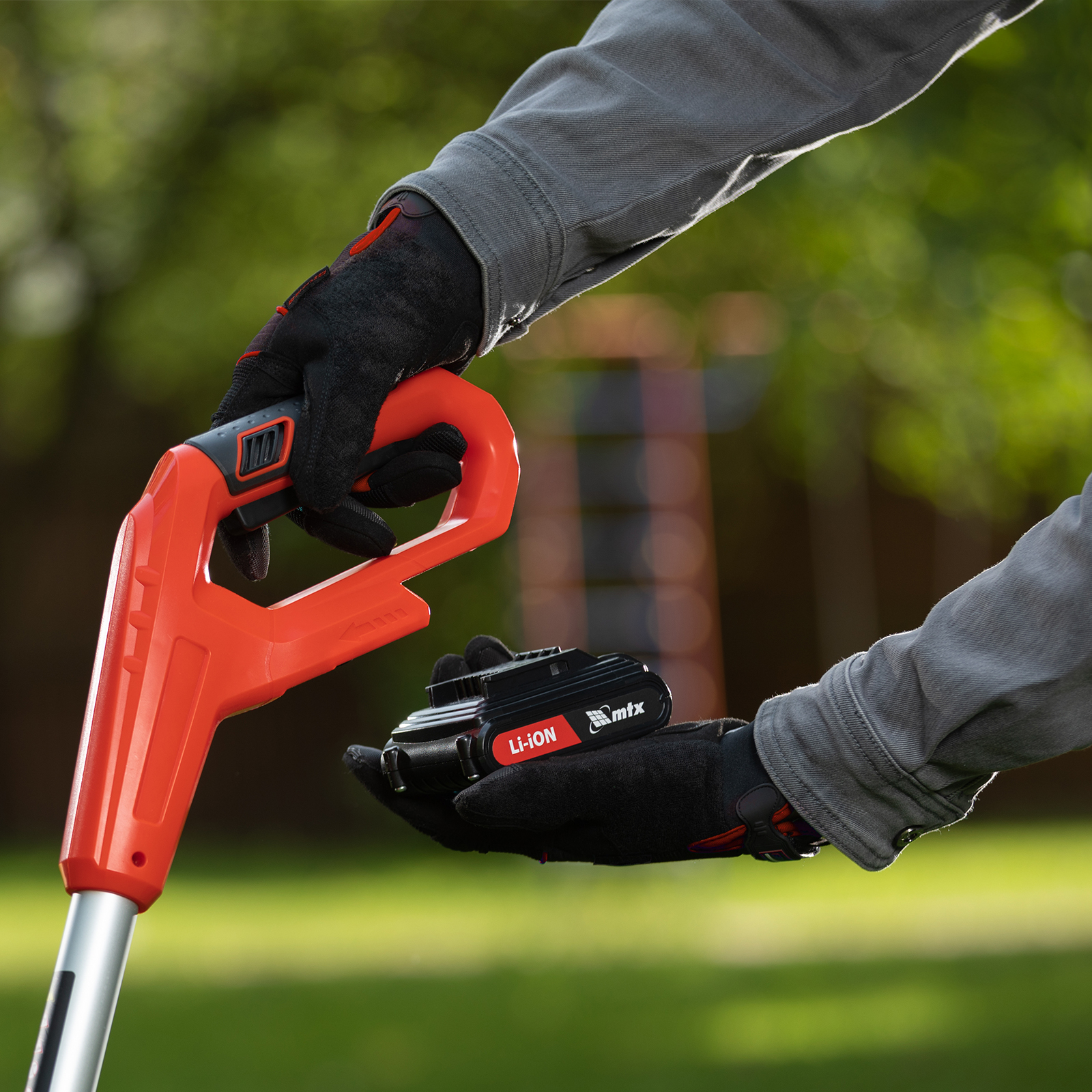 Триммер аккумуляторный MTX GT-260 58730 с аккумулятором Li-Ion напряжением 18 В предназначен для скашивания газонной травы, удаления сорняков и ухода за придомовой территорией. Поставляется с леской диаметром 1,6 мм, ширина скашивания составляет 260 мм. Модель оснащена телескопической штангой, а поворотная головка позволяет работать как в режиме триммера, так и кромкореза.