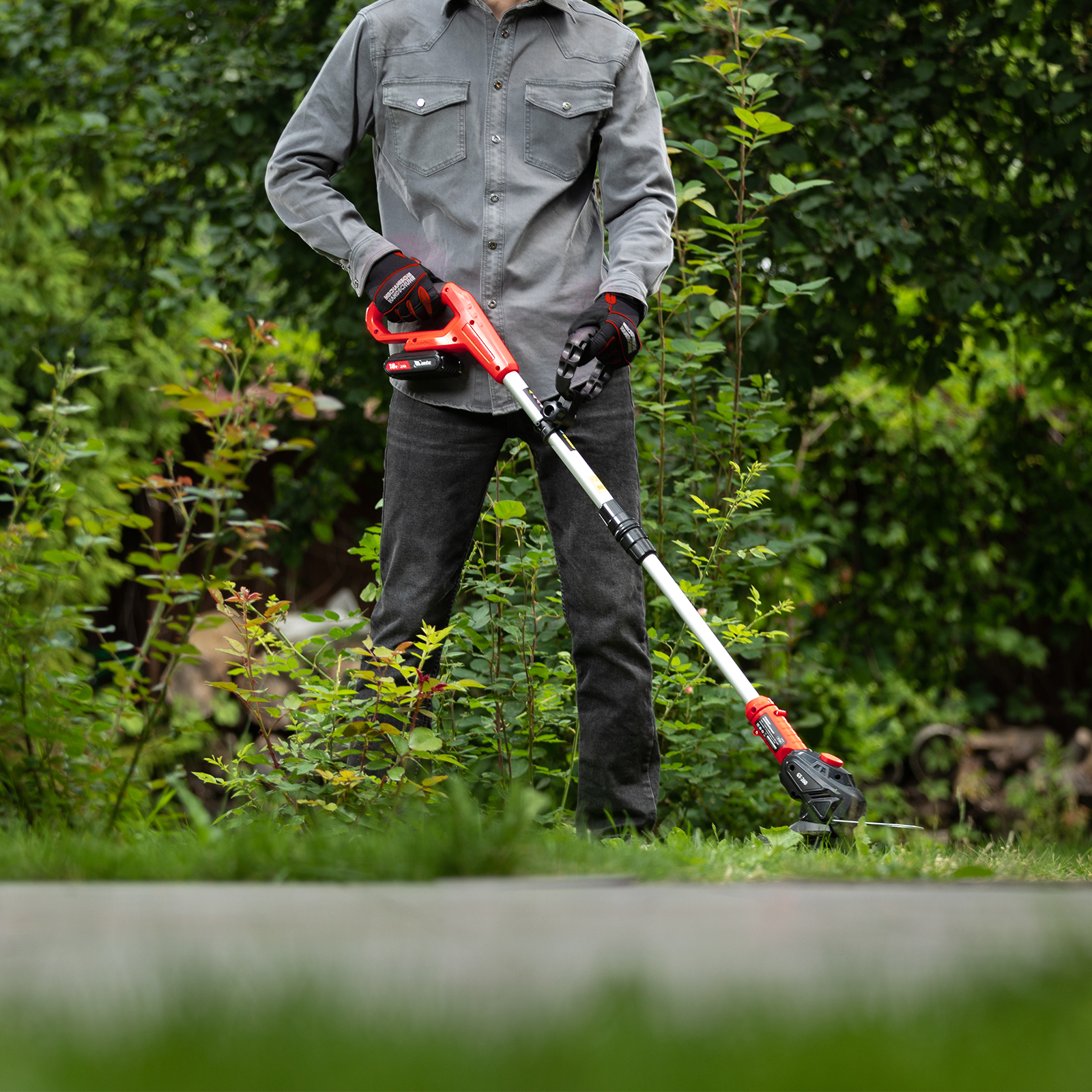 - Удобство работы и хранения — триммер оснащен телескопической штангой.