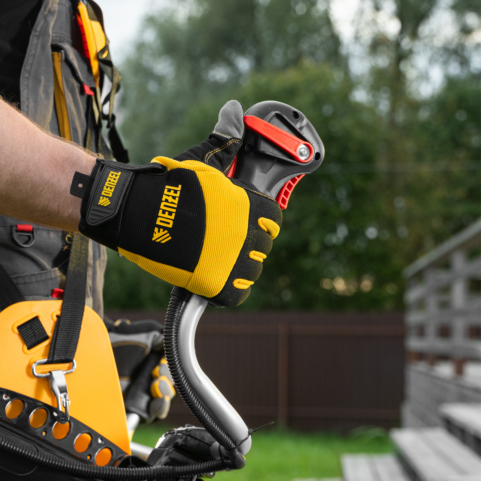 - Удобное управление — все кнопки находятся на правой рукоятке, а клавиша выключения зажигания — под большим пальцем, поэтому можно моментально остановить работу при необходимости.