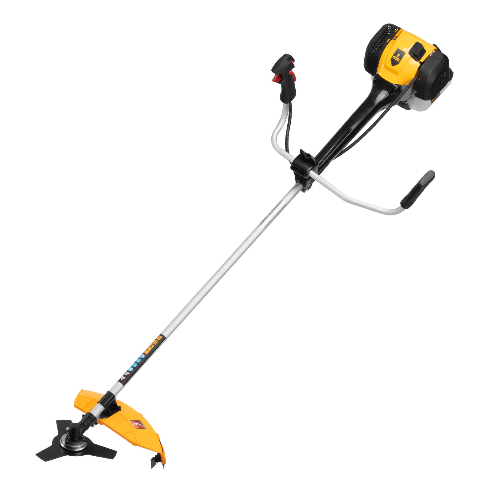 Бензотриммер рассчитан на интенсивные нагрузки, поэтому его также можно использовать для заготовки сена в сельском хозяйстве или для ухода за придомовыми территориями в городе. Двигатель мощностью 3 л.с. и частота вращения оснастки 9500 об/мин позволяют эффективно справляться с большим объемом работ — за 1 час можно обработать участок площадью до 20 соток. Штанга неразъемная, на нее уже установлен редуктор и корпус сцепления, что упрощает финальную сборку инструмента.