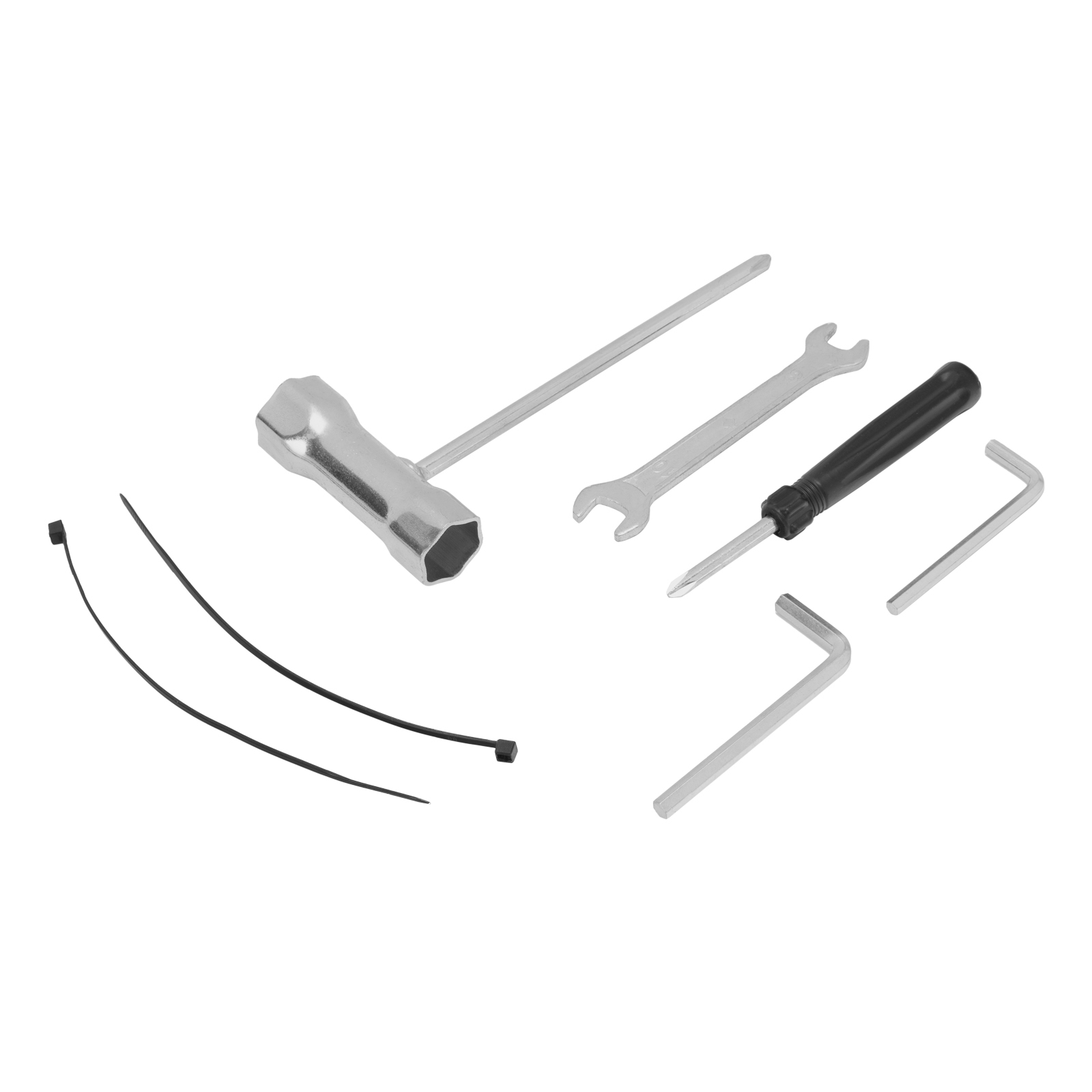 - Продуманная комплектация — к триммеру прилагается канистра для смешивания топлива и комплект ключей для сборки и обслуживания.