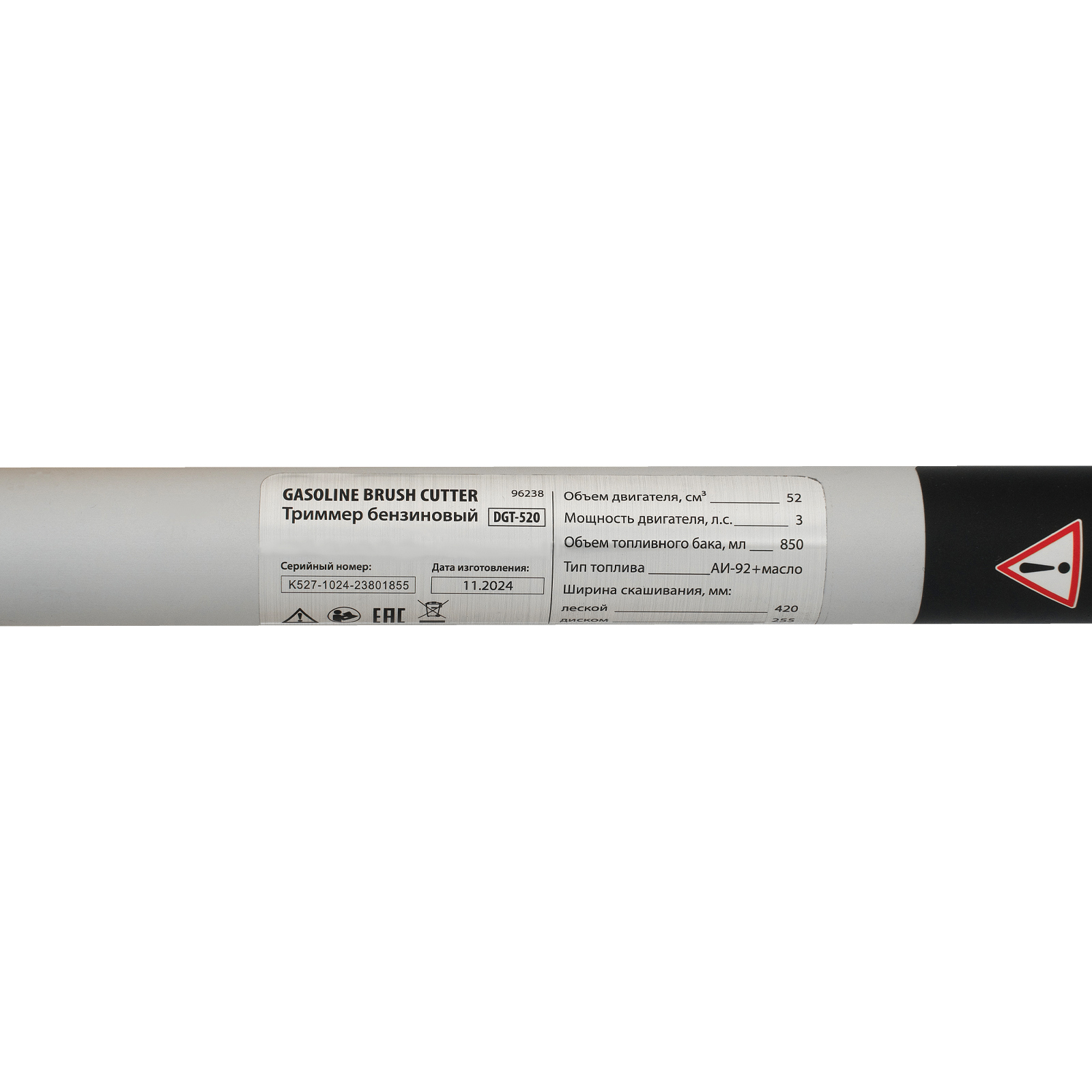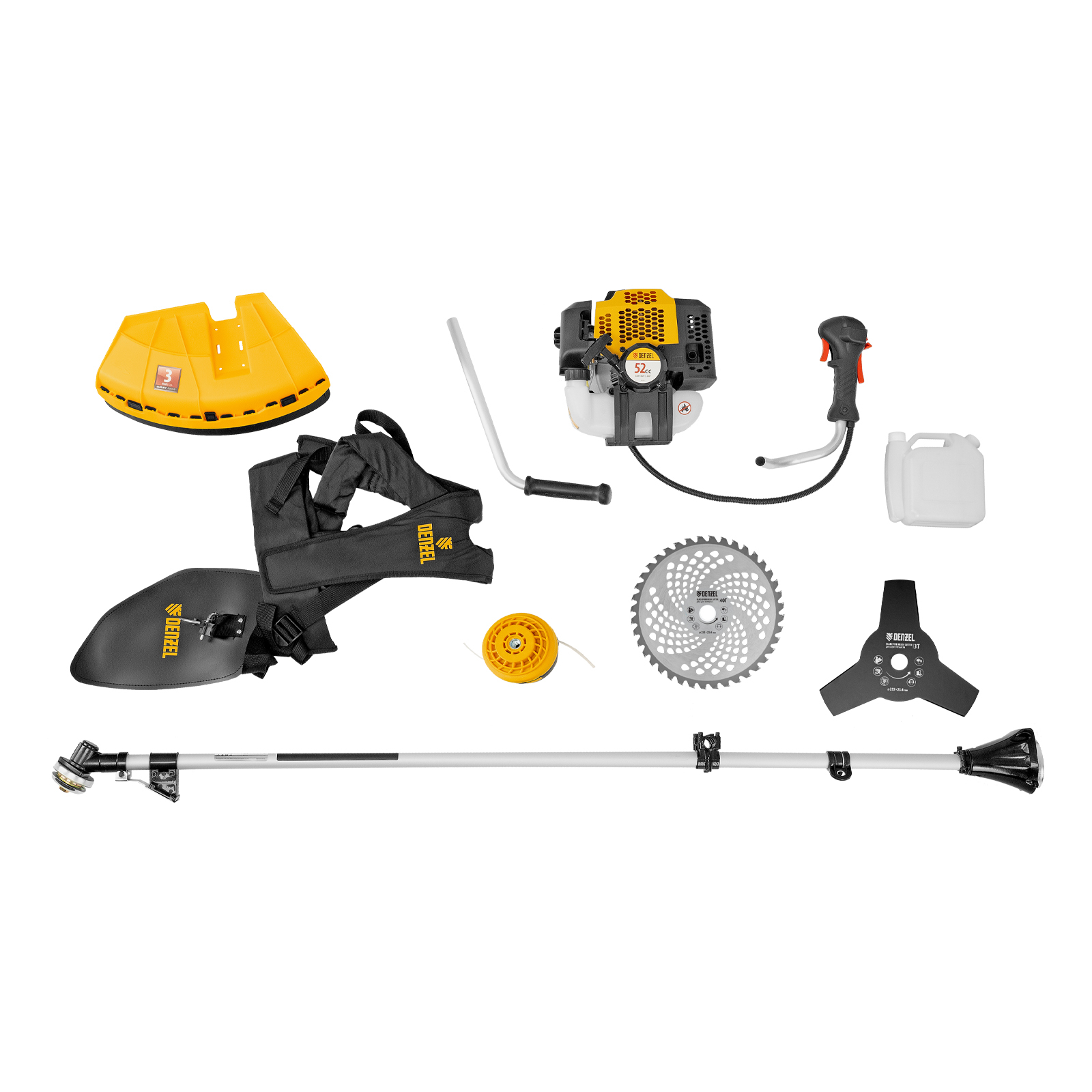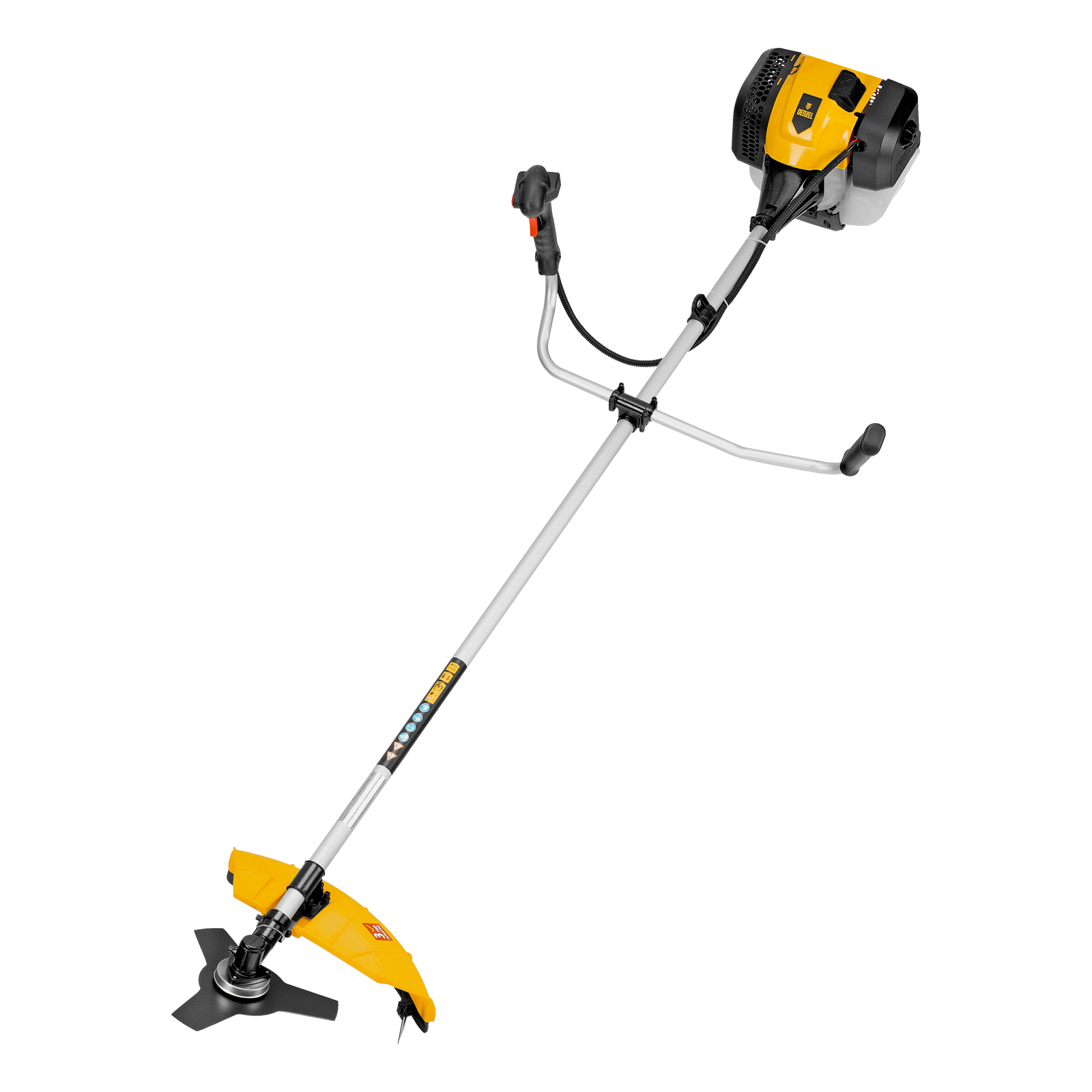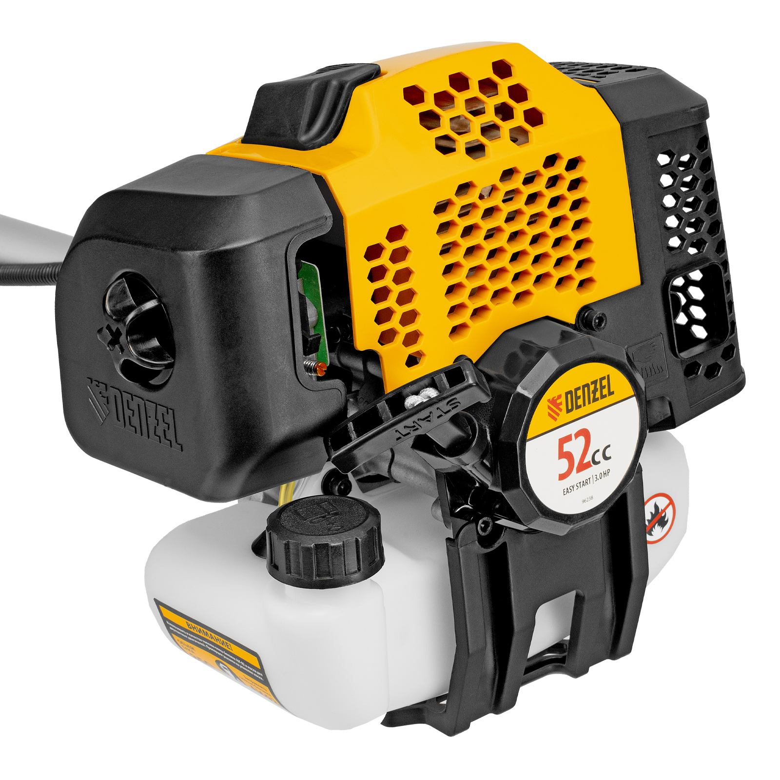 Бензиновый триммер Denzel DGT-520 96238 с неразъемной штангой состоит из 2 частей и оснащен мощным двигателем объемом 52 см3 и мощностью 3 л. с., при этом отличается легкостью и экономичным расходом топлива. Детали двигателя покрыты хромом, что значительно увеличивает ресурс инструмента. Усиленная катушка из полиамида, трехлопастный нож и пильный диск позволяют легко справляться со скашиванием травы всех типов, в том числе с жесткими древовидными стеблями (полыни, крапивы, лебеды, борщевика), а также срезанием кустарника и молодых побегов деревьев с диаметром стволов до 10 мм. Триммер удобен для работы в недоступных для колесной косилки местах. Хорошая сбалансированность инструмента, современная антивибрационная система, подвесной двухплечевой ремень и удобное управление позволяют работать с комфортом даже продолжительное время.
