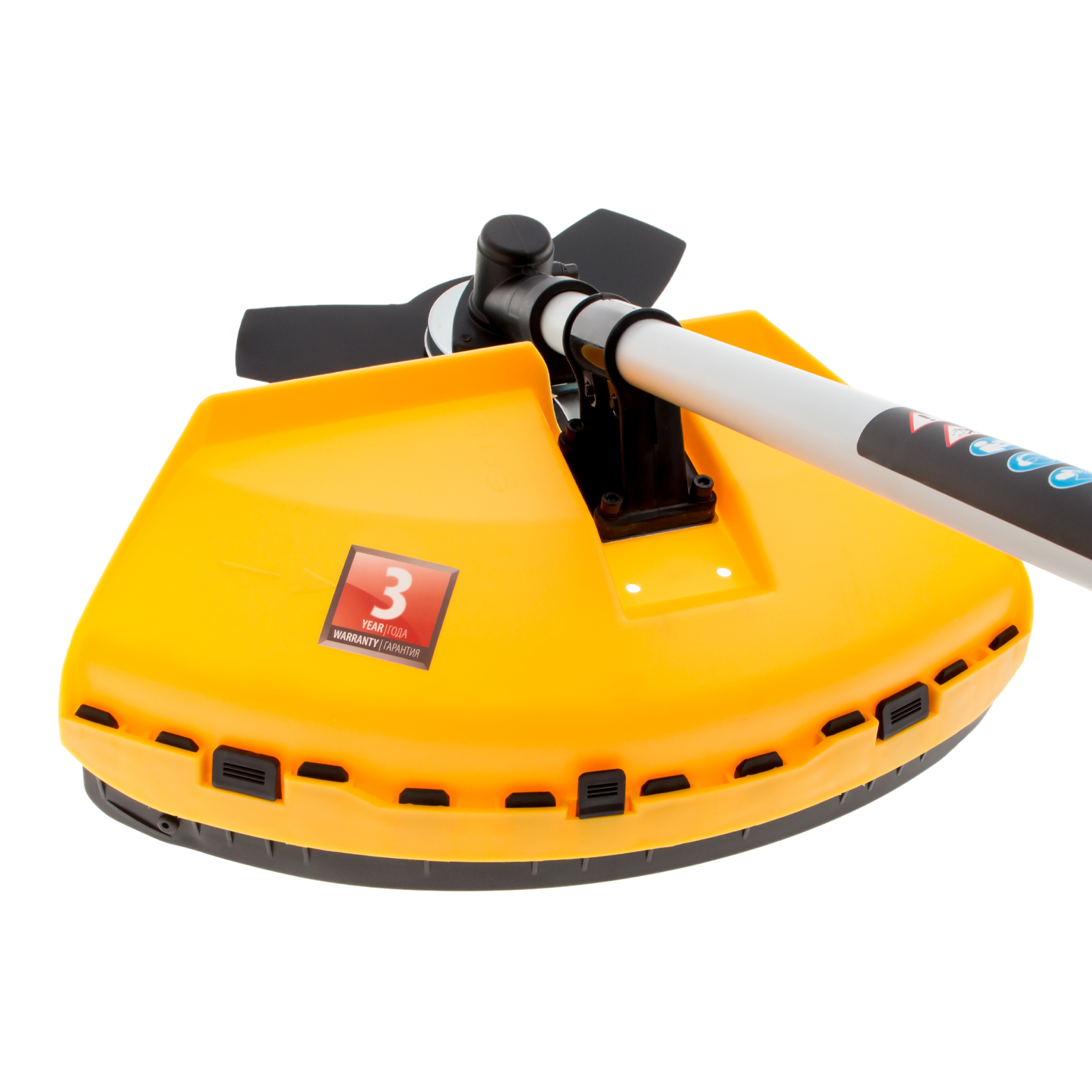 - Безопасная работа — защитный кожух предотвращает вылет земли, веток и камней на пользователя.