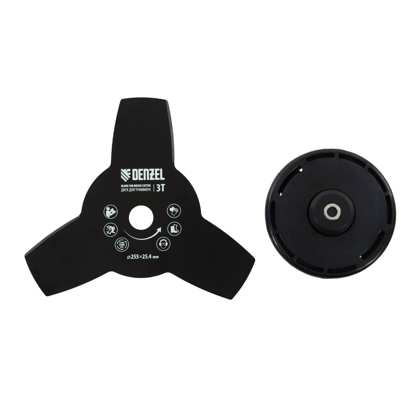 - Дополнительные возможности — можно приобрести диск Denzel 96323 с шириной скашивания 230 мм для быстрого удаления растительности с жесткими стеблями, 96328 для скашивания молодых побегов кустарника диаметром до 3 мм, 96340 для срезания борщевика, кустарника и молодых побегов деревьев с диаметром стволов до 10 мм.