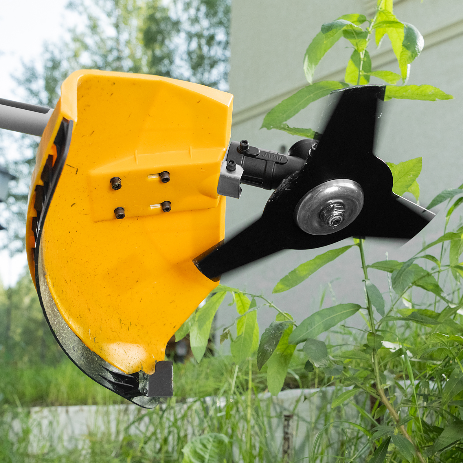 - Легкая установка насадок — бензотриммером удобно обрабатывать участки с разными типами растительности.