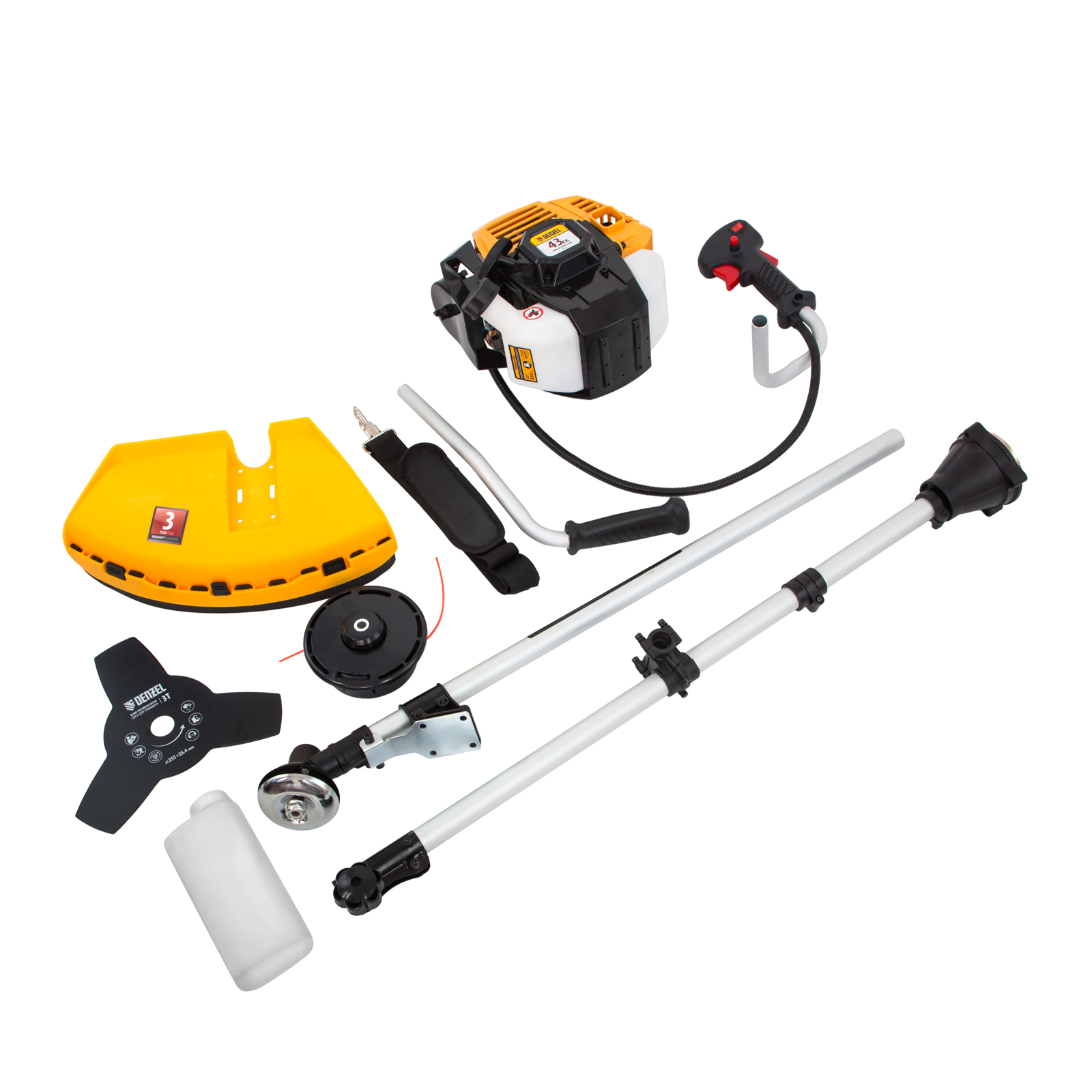 Триммер бензиновый DR-43S, 43 см3, разъемная штанга, состоит из 2 частей Denzel
