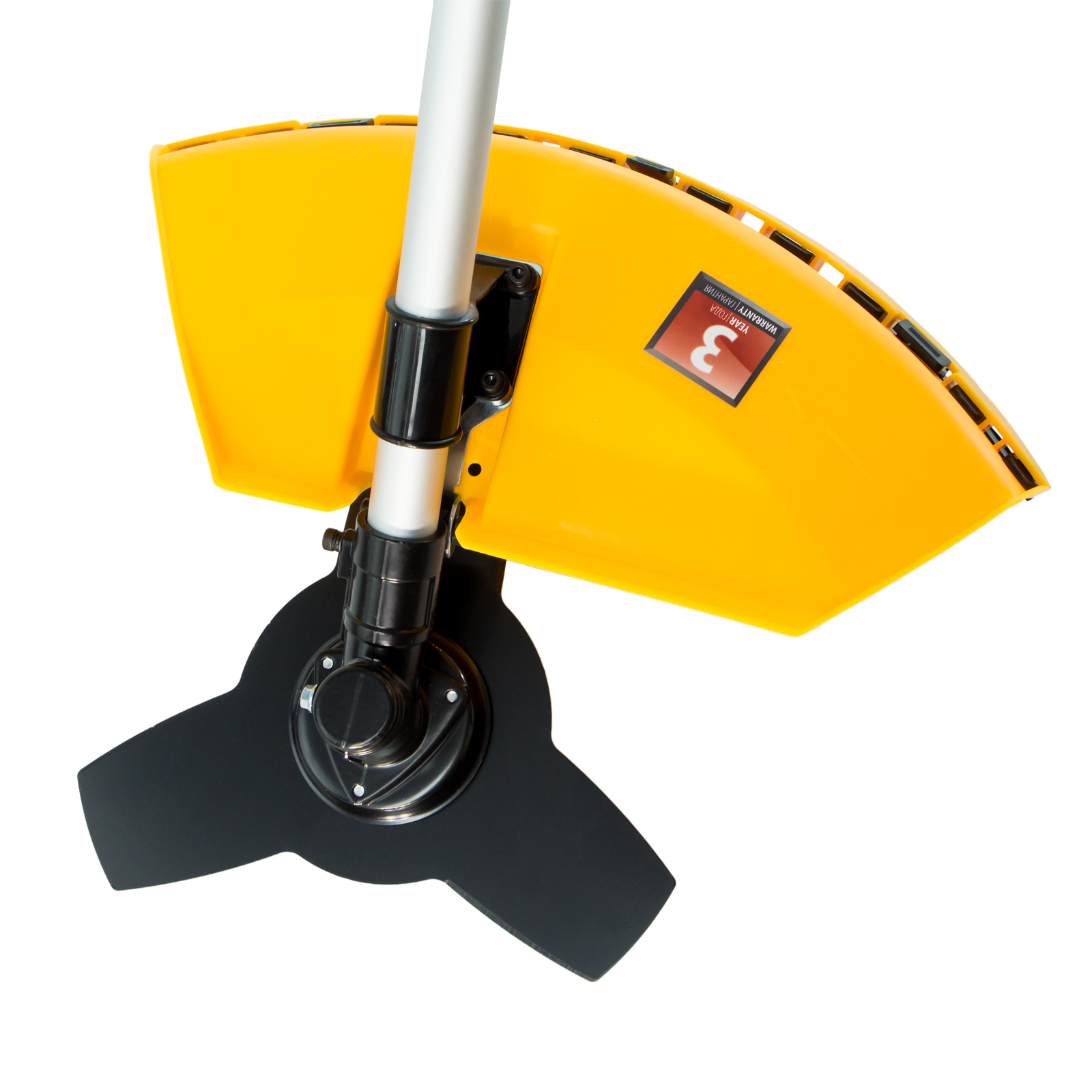 - Защита пользователя от разлетающейся травы и камней — производитель предусмотрел надежный кожух из противоударного пластика.