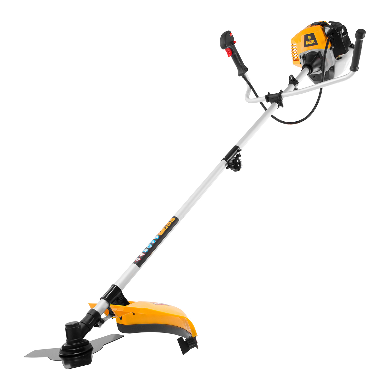 Бензиновый триммер Denzel DR-52S 96276 с двигателем объемом 52 см3 и разъемной штангой, состоит из 2 частей. Используется для ухода за газоном, скашивания травы различных типов, в том числе с жесткими стеблями (полынь, крапива, лебеда). Триммер эффективен на сложных участках: вдоль стен, в ямках и на возвышенностях, вокруг деревьев. Две режущие насадки — трехлопастный нож и катушка с леской — вращаются со скоростью 9500 об/мин, обеспечивая ширину скашивания 25,5 и 42 см. Эффективную работу инструмента обеспечивает двухтактный двигатель мощностью 3 л.с. При этом триммер экономично расходует топливо, поэтому часто заправлять его не придется.