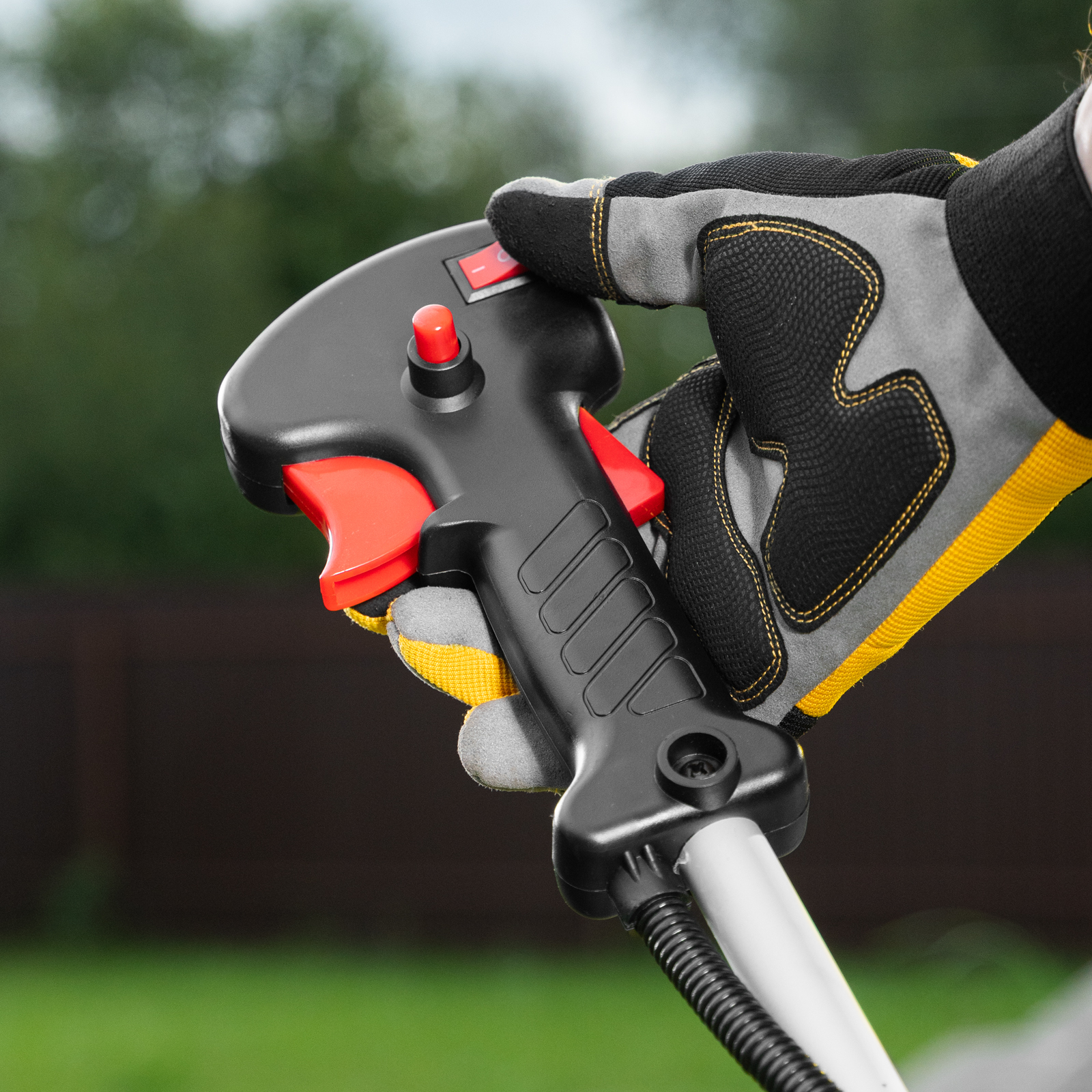 - Безопасность пользователя — блокиратор газа исключает случайный запуск триммера.