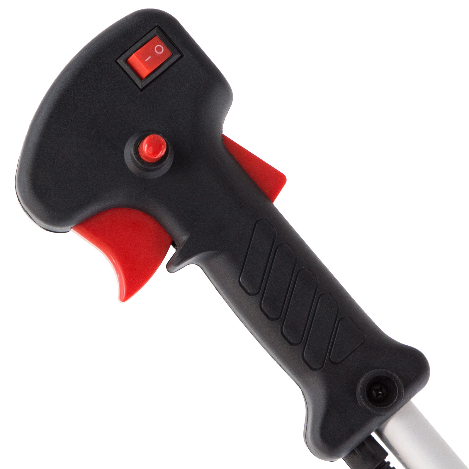 - Удобное и простое управление — все кнопки собраны на правой рукоятке: выключатель, клавиша газа и блокиратор случайного пуска.