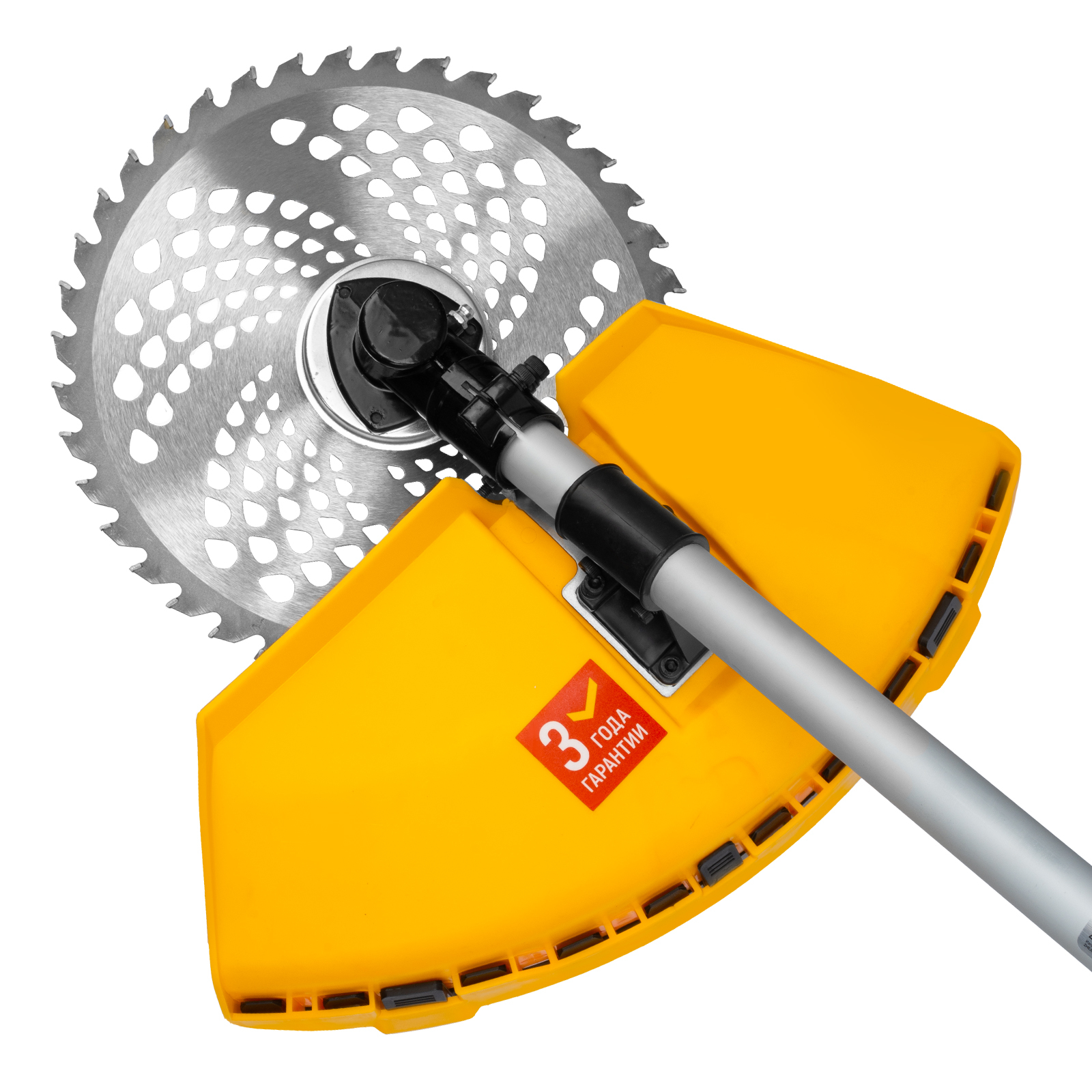 - Автоматическая подрезка лески — нож на кожухе укорачивает концы корда до нужной длины, что предотвращает перегрузку двигателя.