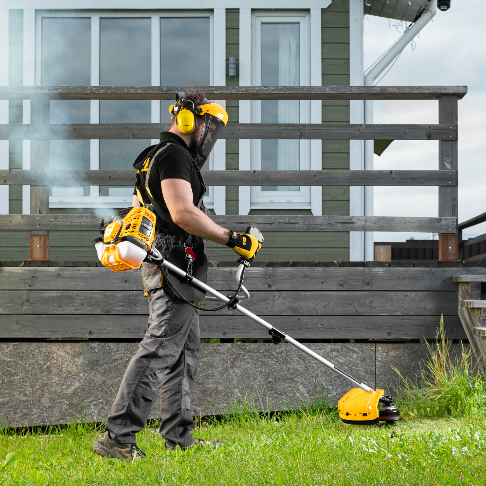 - Мобильность — небольшой вес 7,2 кг и качественная балансировка позволяют легко перемещать триммер и маневрировать даже на сложных участках.