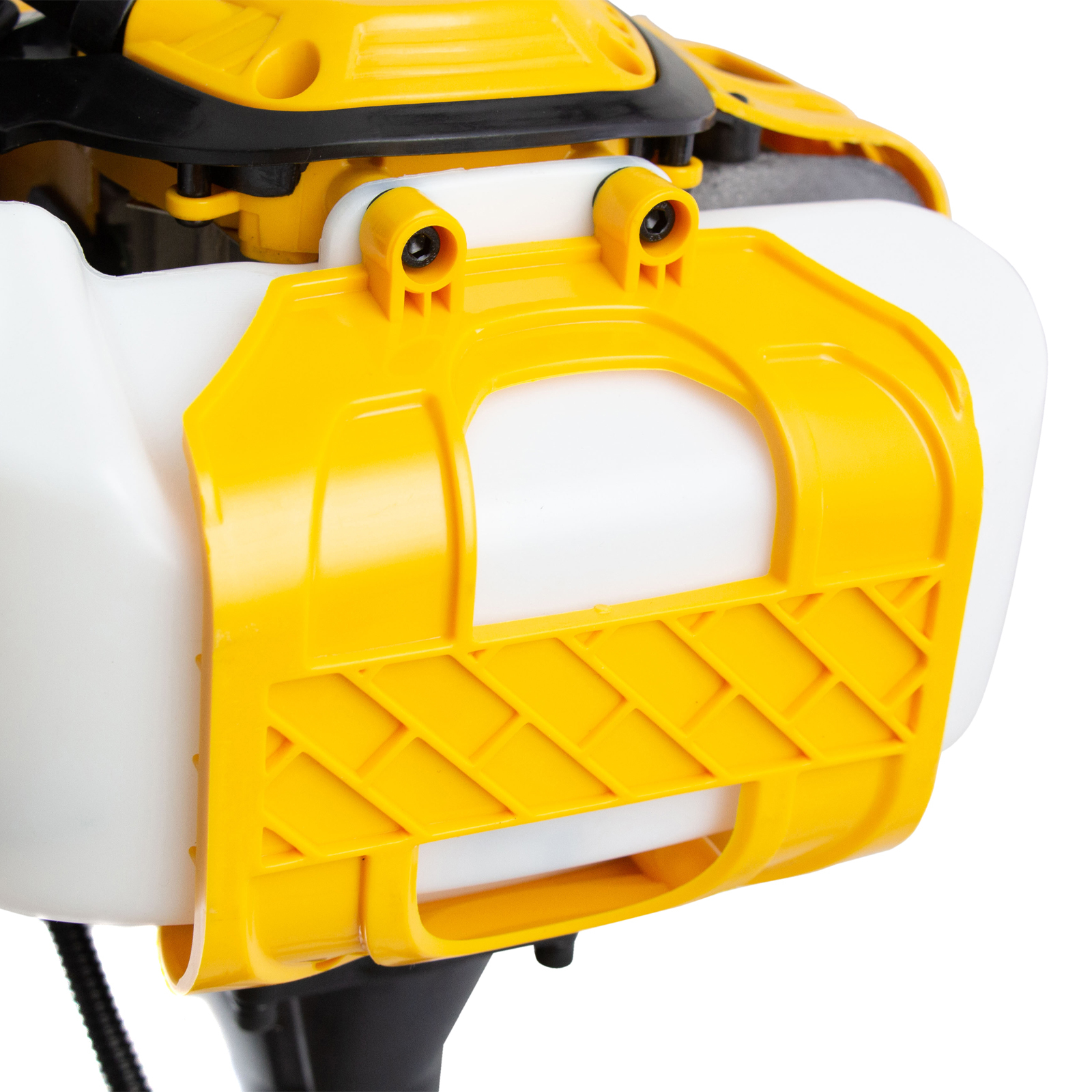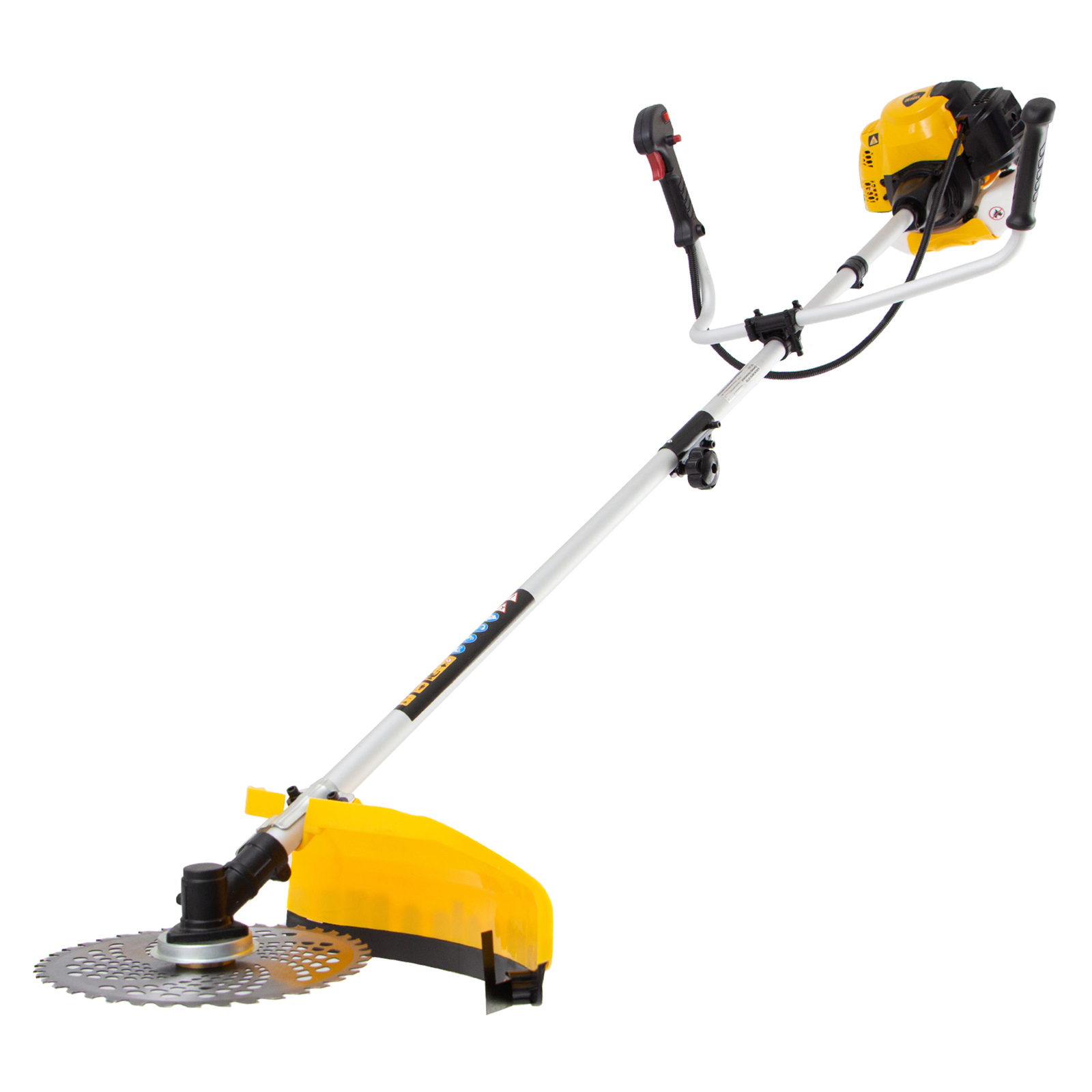 - Защита пользователя — прочный кожух предотвращает вылетание травы, веток и камней.