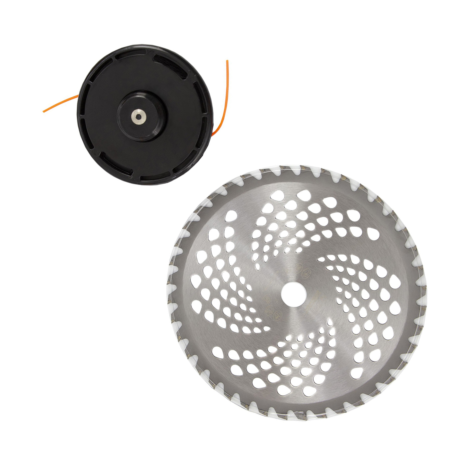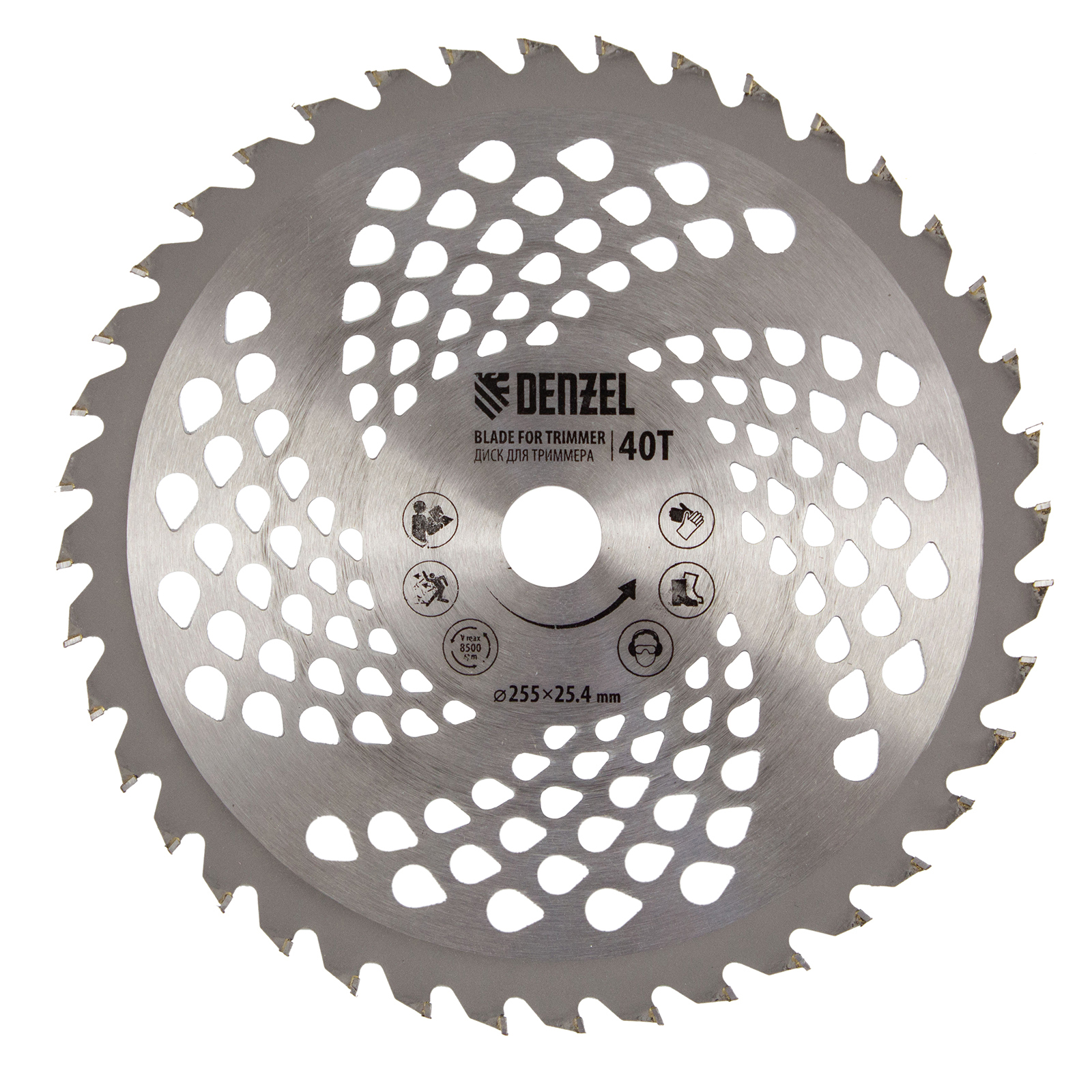 - Дополнительные возможности — можно приобрести и установить на триммер диски Denzel 96323, 96325 для быстрого удаления растительности с жесткими стеблями (полыни, крапивы, лебеды), 96328 для скашивания молодых побегов кустарника диаметром до 3 мм.