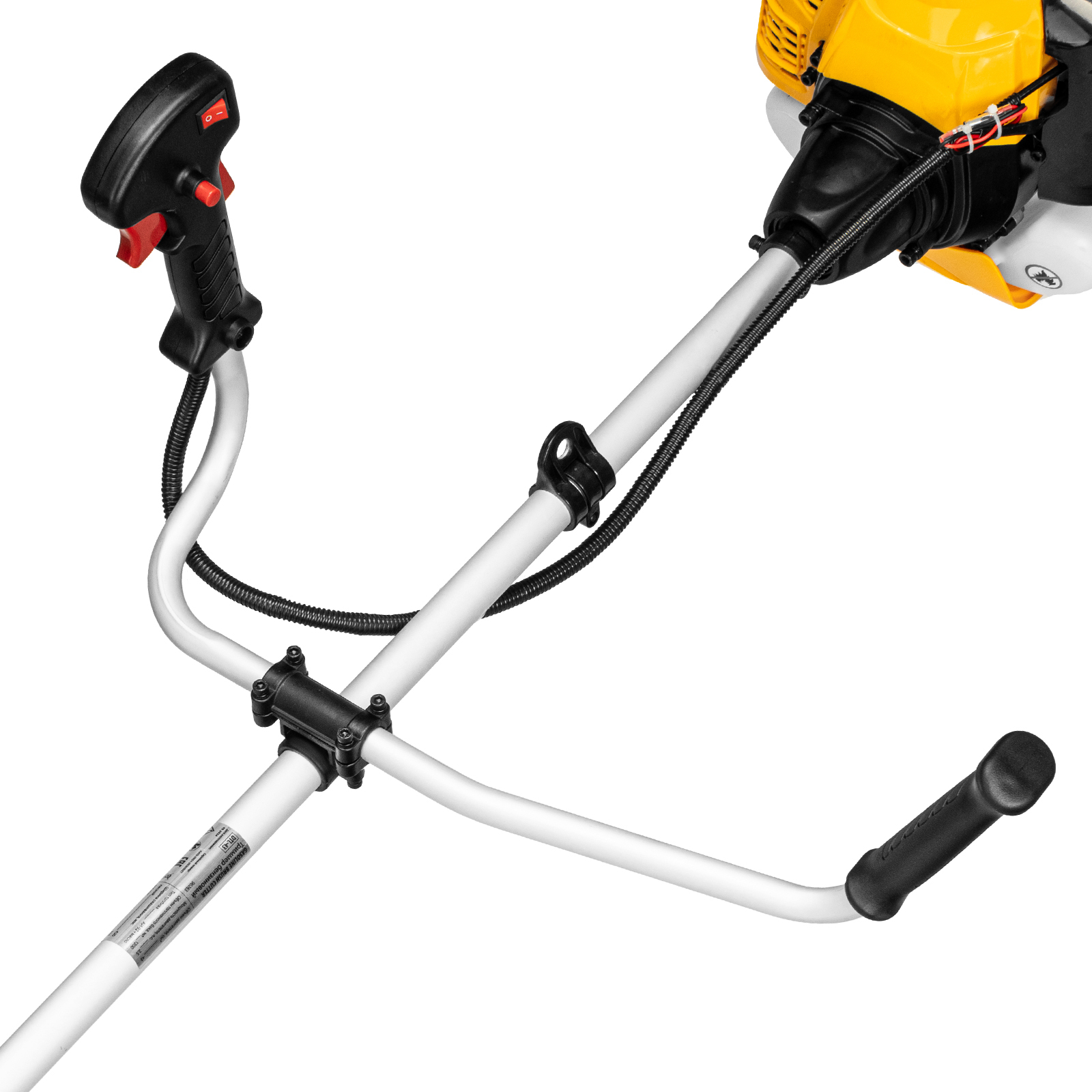 - Удобное управление — асимметричная U-образная рукоятка с прорезиненным покрытием обеспечивает надежный захват двумя руками, антивибрационная система позволяет с комфортом работать даже долгое время.