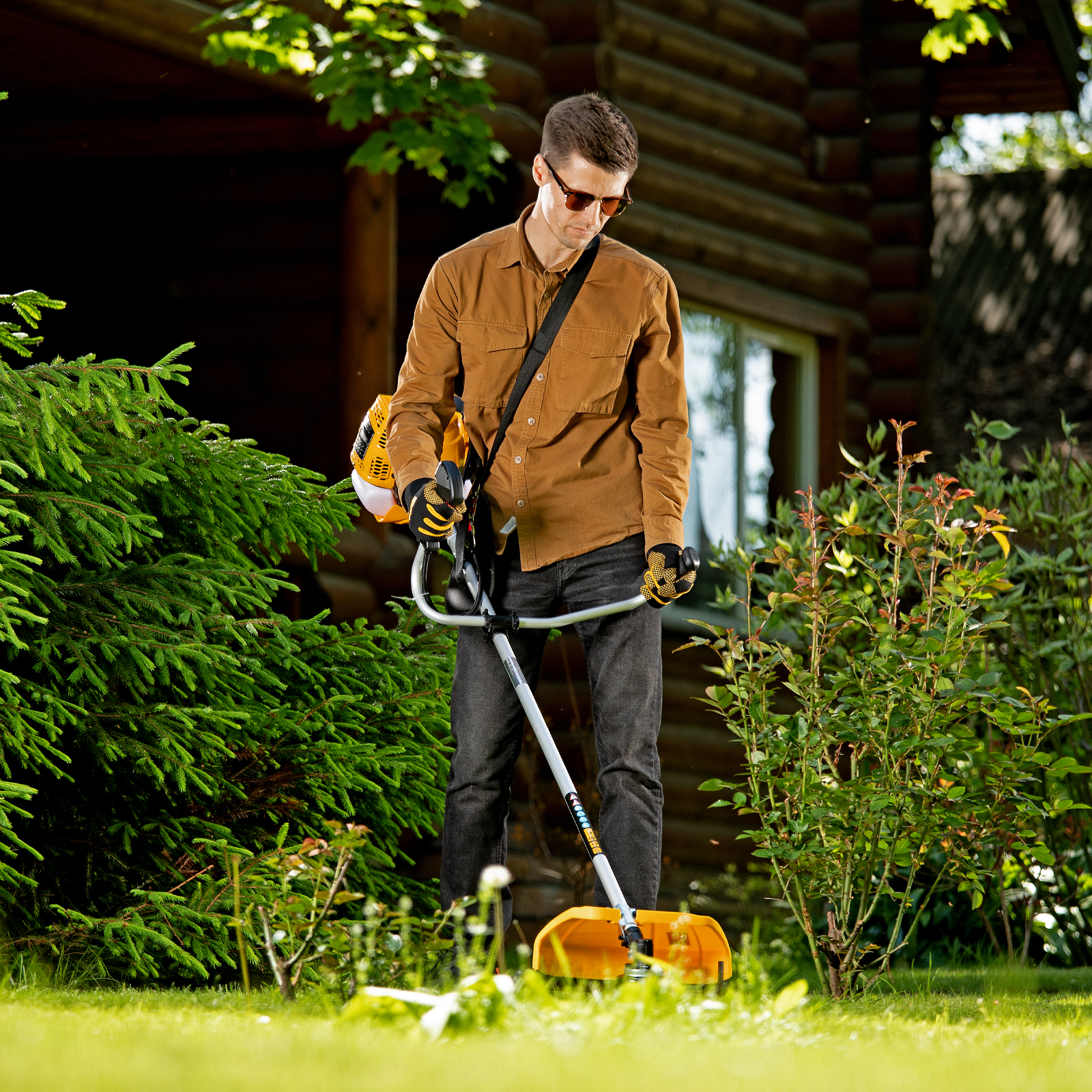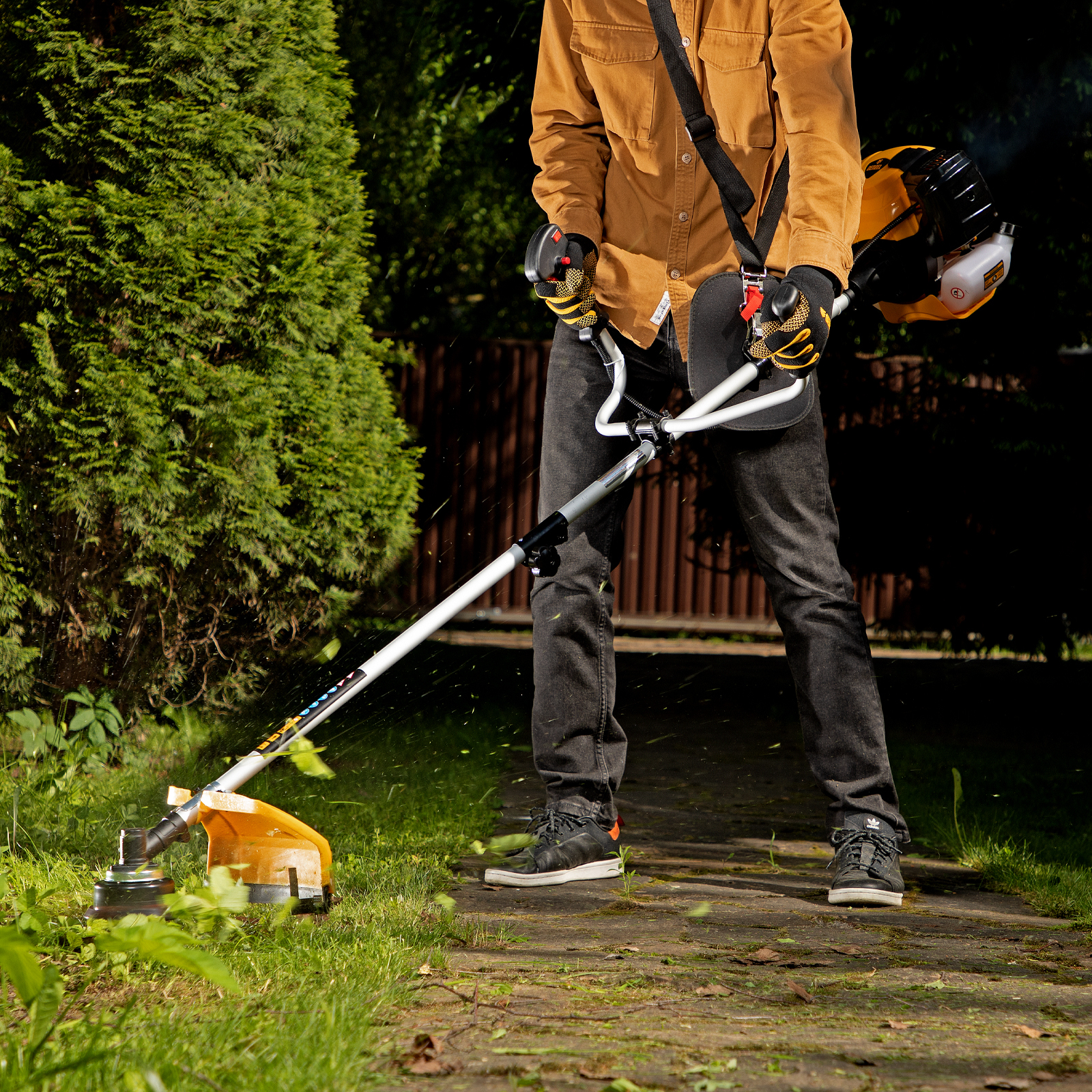 - Мобильность — вес триммера составляет всего 7,6 кг, как у моделей с меньшей мощностью, поэтому его легко перемещать.