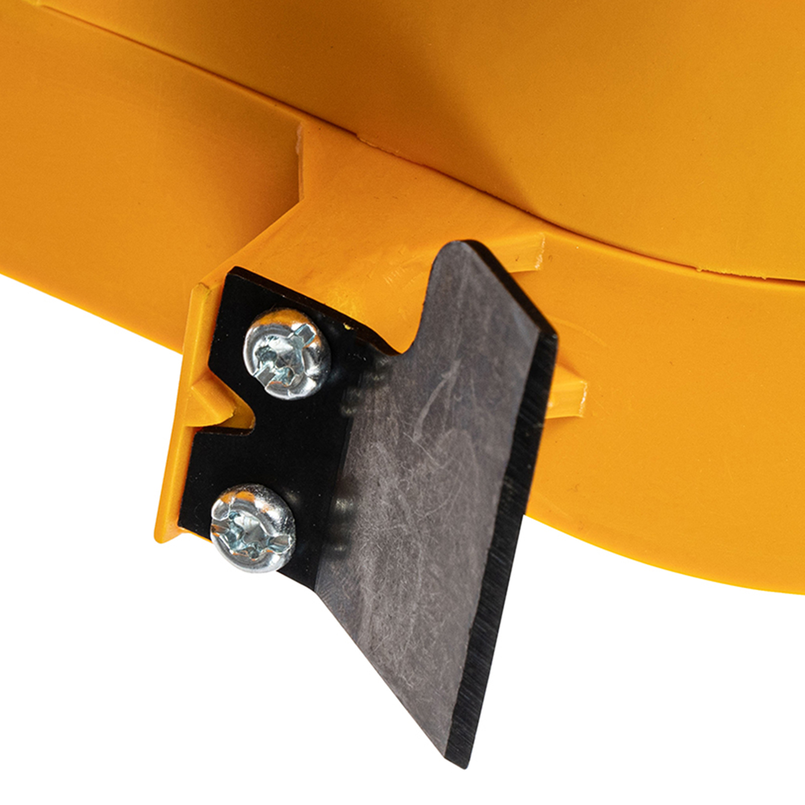 - Специальный нож на фартуке кожуха — концы лески подрезаются до нужной длины, это позволяет предотвратить перегрузку двигателя.