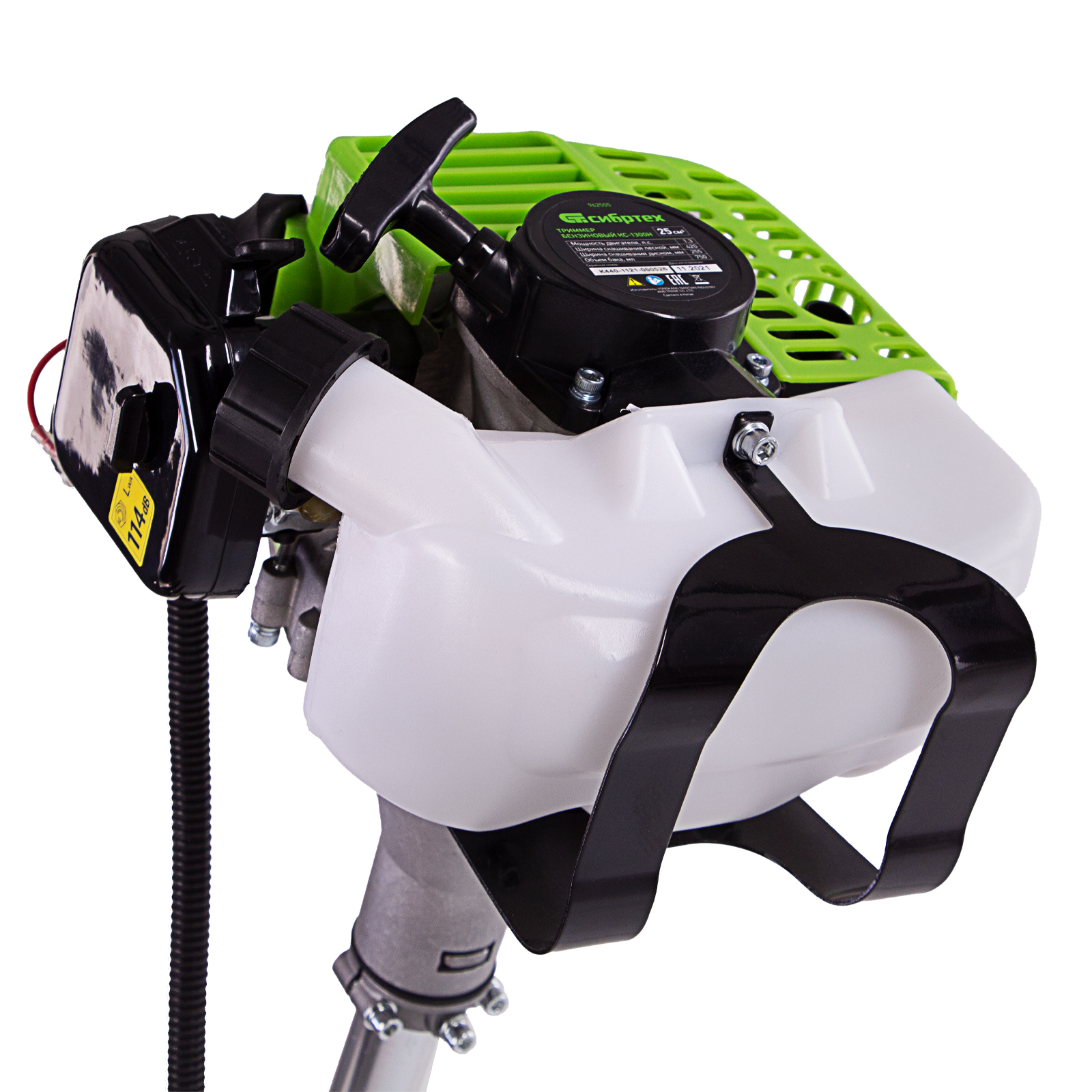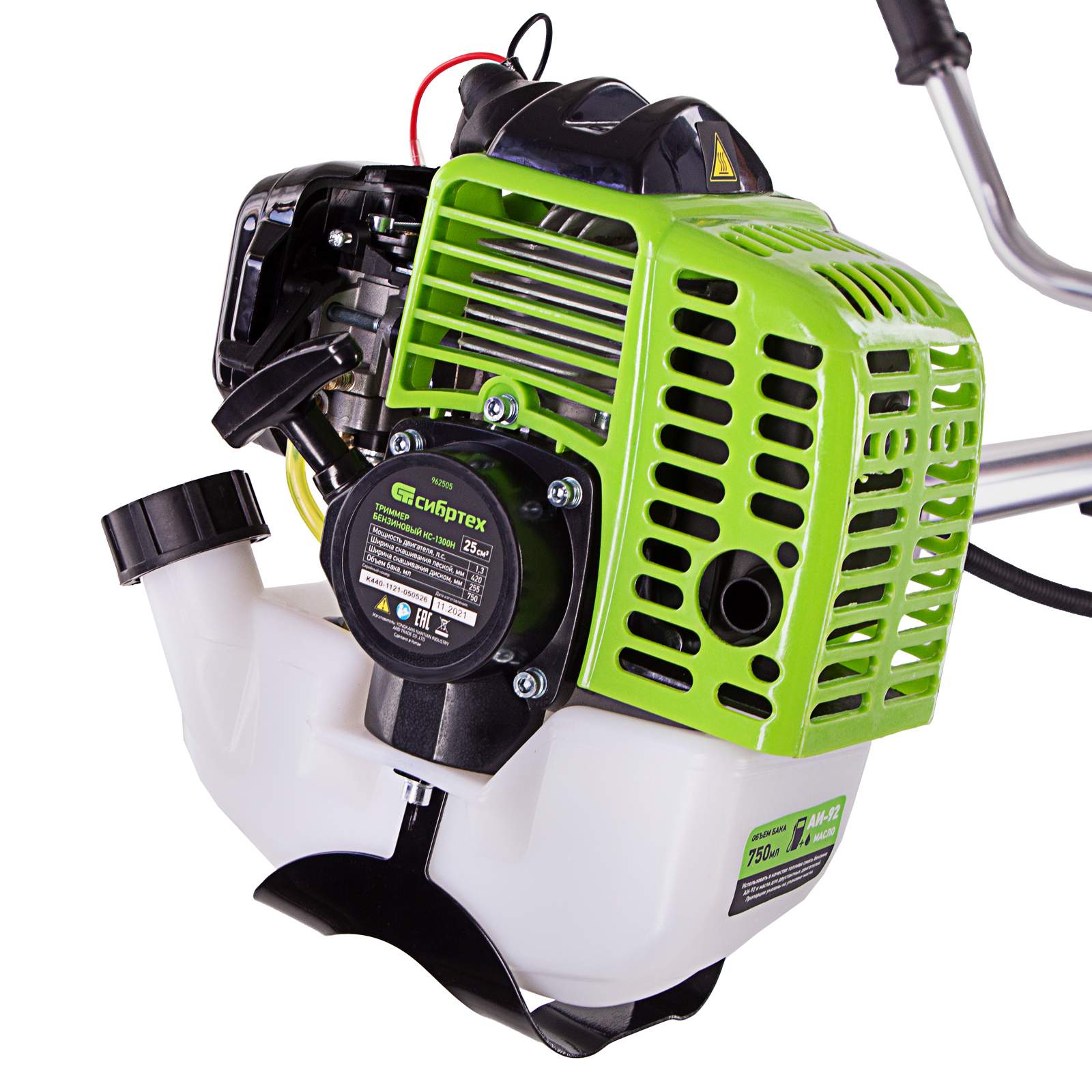 Бензиновый триммер Сибртех КС-1300Н 962505 с неразъемной штангой имеет двигатель объемом 25 куб. см, поставляется комплектом из 2 частей и предназначен для ухода за дачным участком. Используется для стрижки и скашивания травы, обработки границ газонов и борьбы с сорняками. Для эффективного решения этих задач предусмотрены катушка с леской и трехлопастный нож, легко срезающий густую траву и толстые стебли. Ширина скашивания леской составляет 42 см, ножом — 25,5 см, что в сочетании с мощностью двигателя 1,3 л. с. обеспечивает высокую производительность триммера.