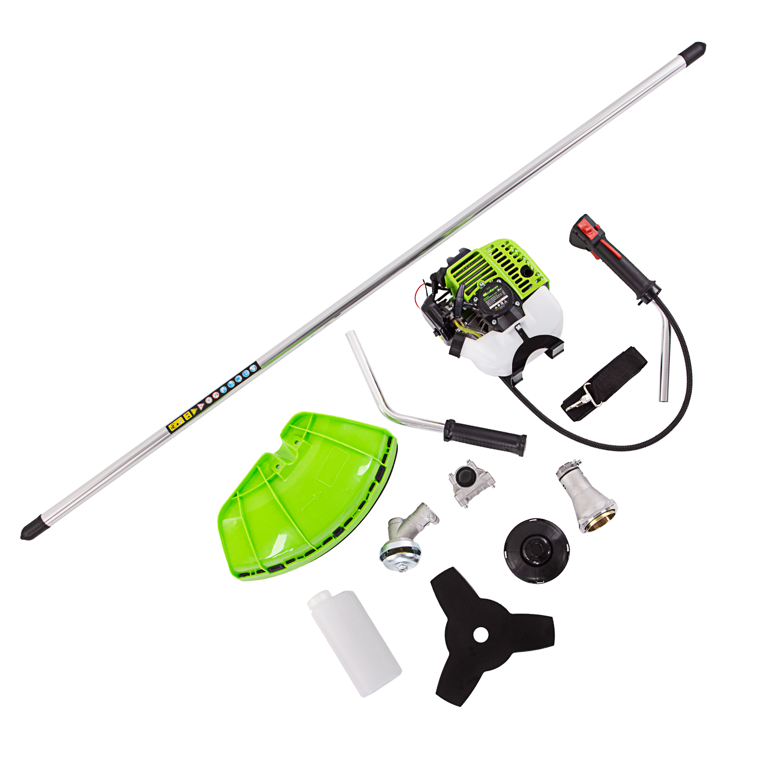 Двигатель с правой рукояткой - 1 штЛевая рукоятка - 1 штШтанга - 1 штЗащитный кожух с ножом - 1 штКронштейн защитного кожуха - 1 штКатушка с леской - 1 штНож трехлопастной - 1 штДозатор для приготовления смеси - 1 штРемень плечевой - 1 штКорпус сцепления с крепежом - 1 штРедуктор с винтами - 1 штУзел крепления рукояток с крепежом - 1 штУзел подвеса ремня - 1 штСвечной ключ - 1 штИмбусовый ключ Н5 - 1 штИмбусовый ключ Н6 - 1 штБолт M6×20 - 4 штБолт M5×15 - 2 штГайка M5 - 2 штХомут - 2 шт