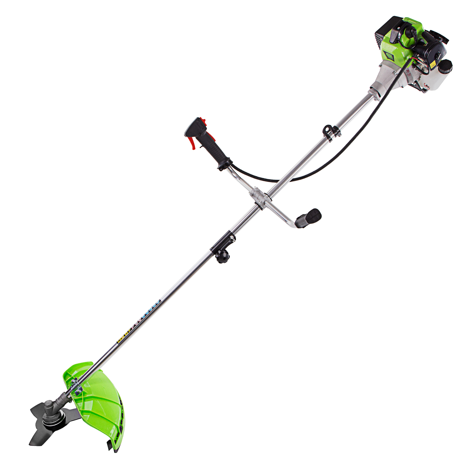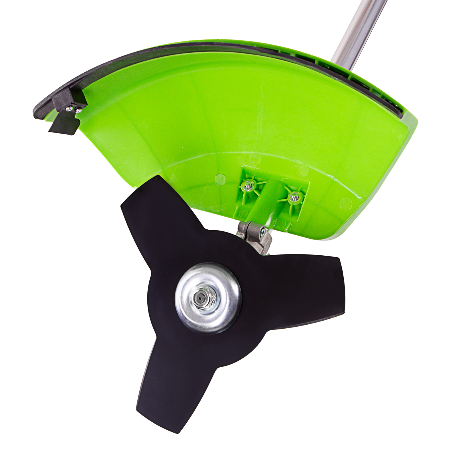 - Защита от летящей травы и камней — режущий элемент со стороны пользователя закрыт прочным пластиковым кожухом.