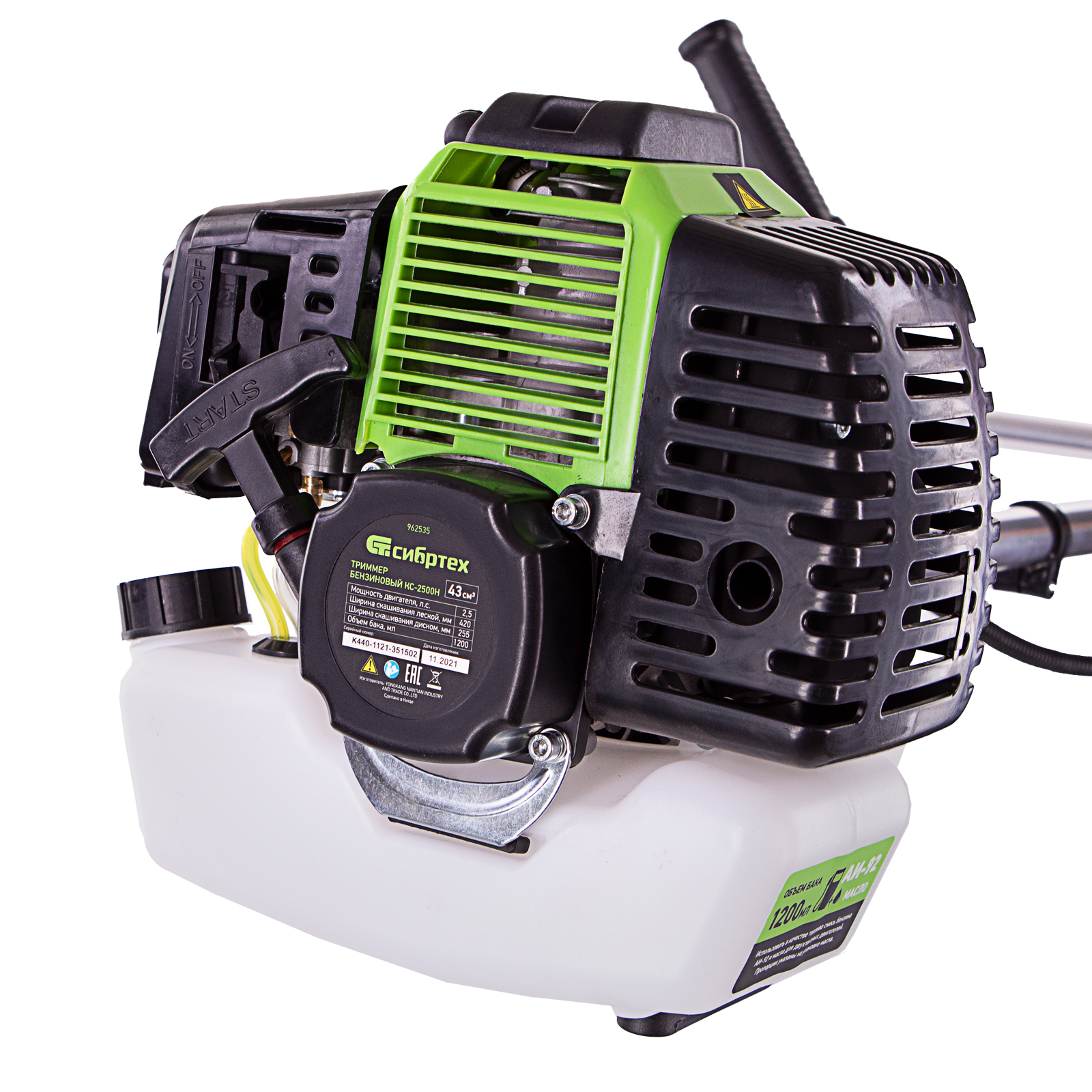 Бензиновый триммер Сибртех КС-2500Н 962535 с неразъемной штангой имеет двигатель объемом 43 куб. см, поставляется комплектом из 2 частей и предназначен для ухода за дачным участком. Используется для стрижки и скашивания травы, обработки границ газонов и борьбы с сорняками. Для эффективного решения этих задач предусмотрены катушка с леской и трехлопастный нож, легко срезающий густую траву и толстые стебли. Ширина скашивания леской составляет 42 см, ножом — 25,5 см, что в сочетании с мощностью двигателя 2,5 л. с. обеспечивает высокую производительность триммера.