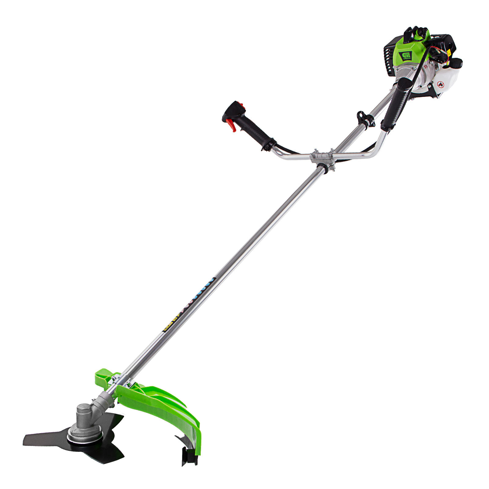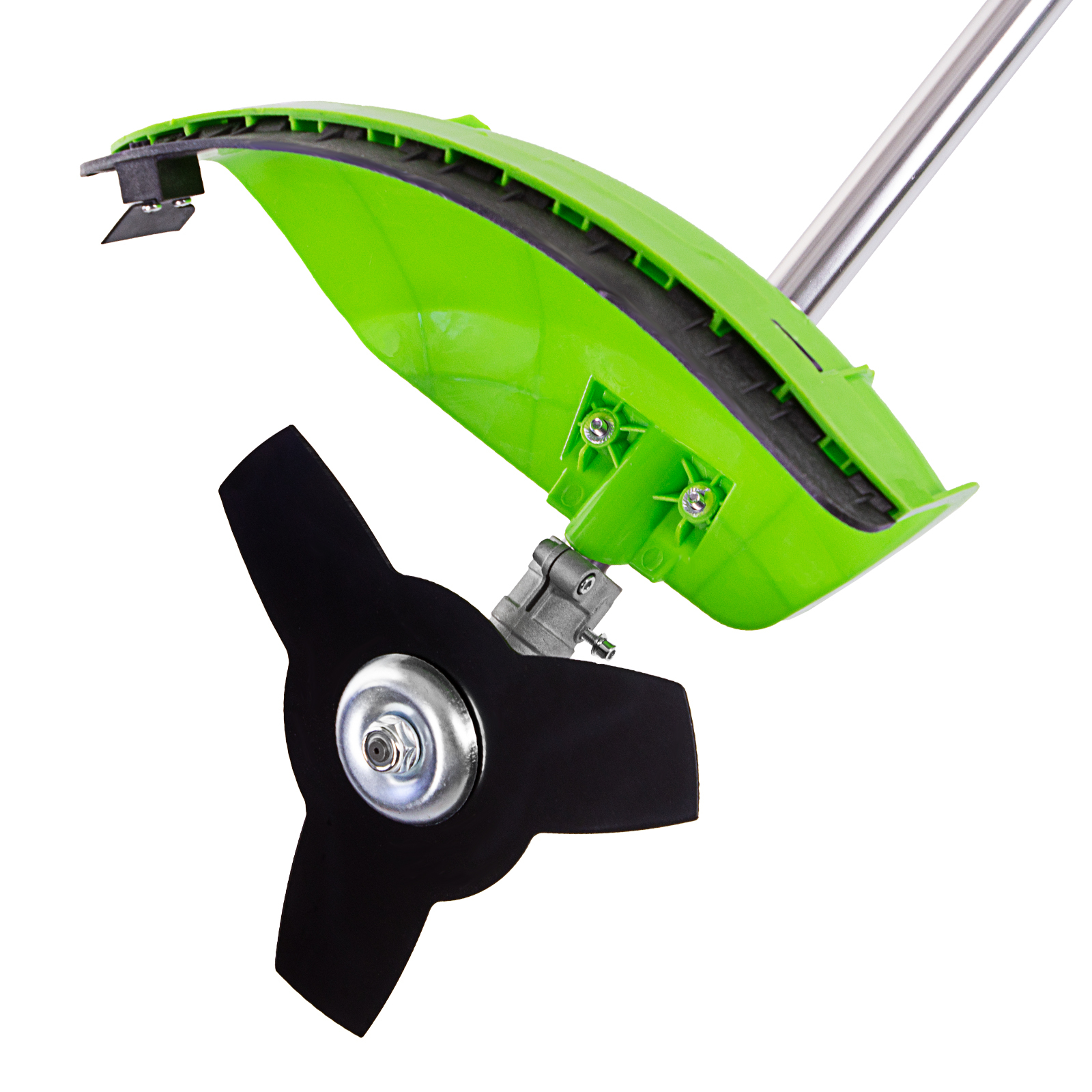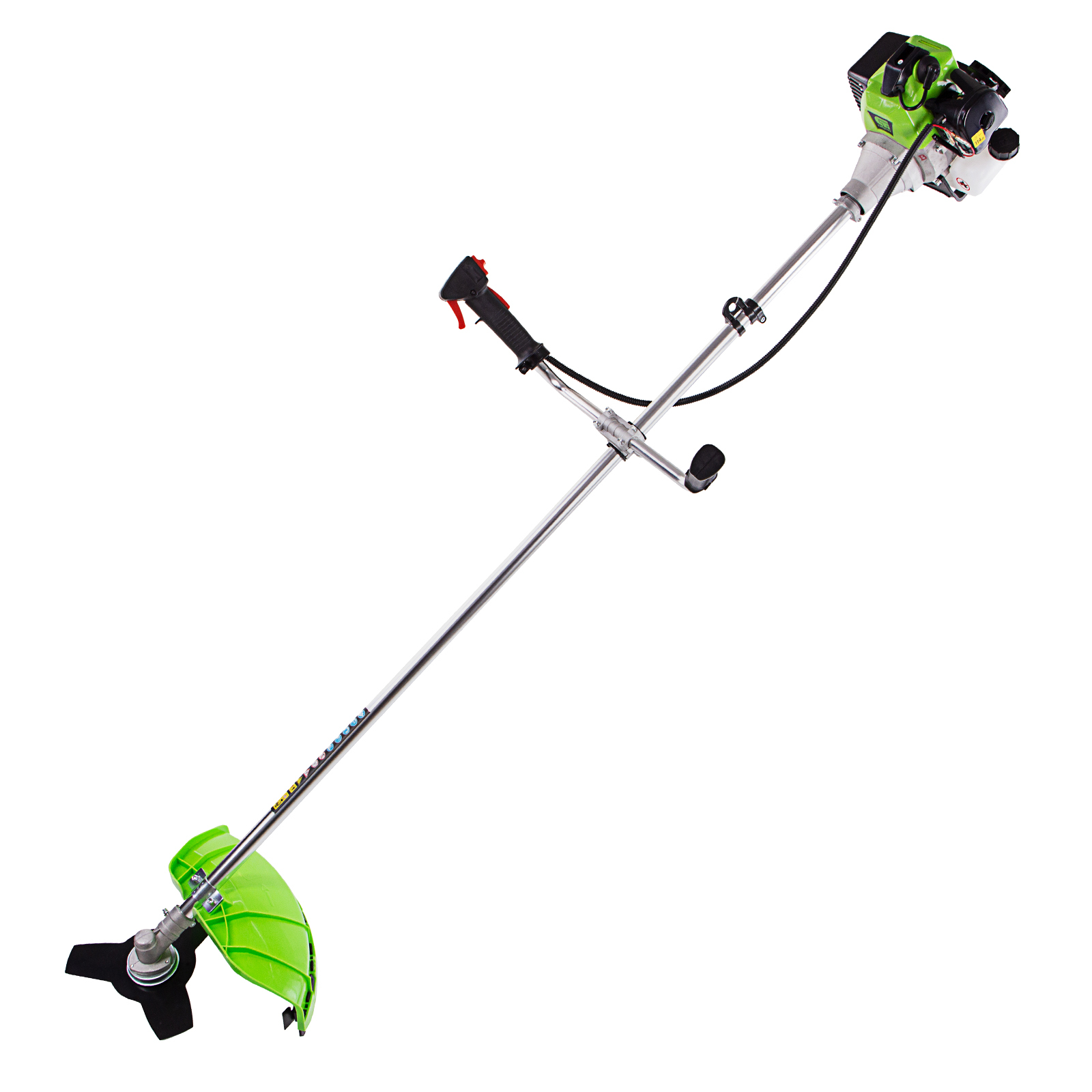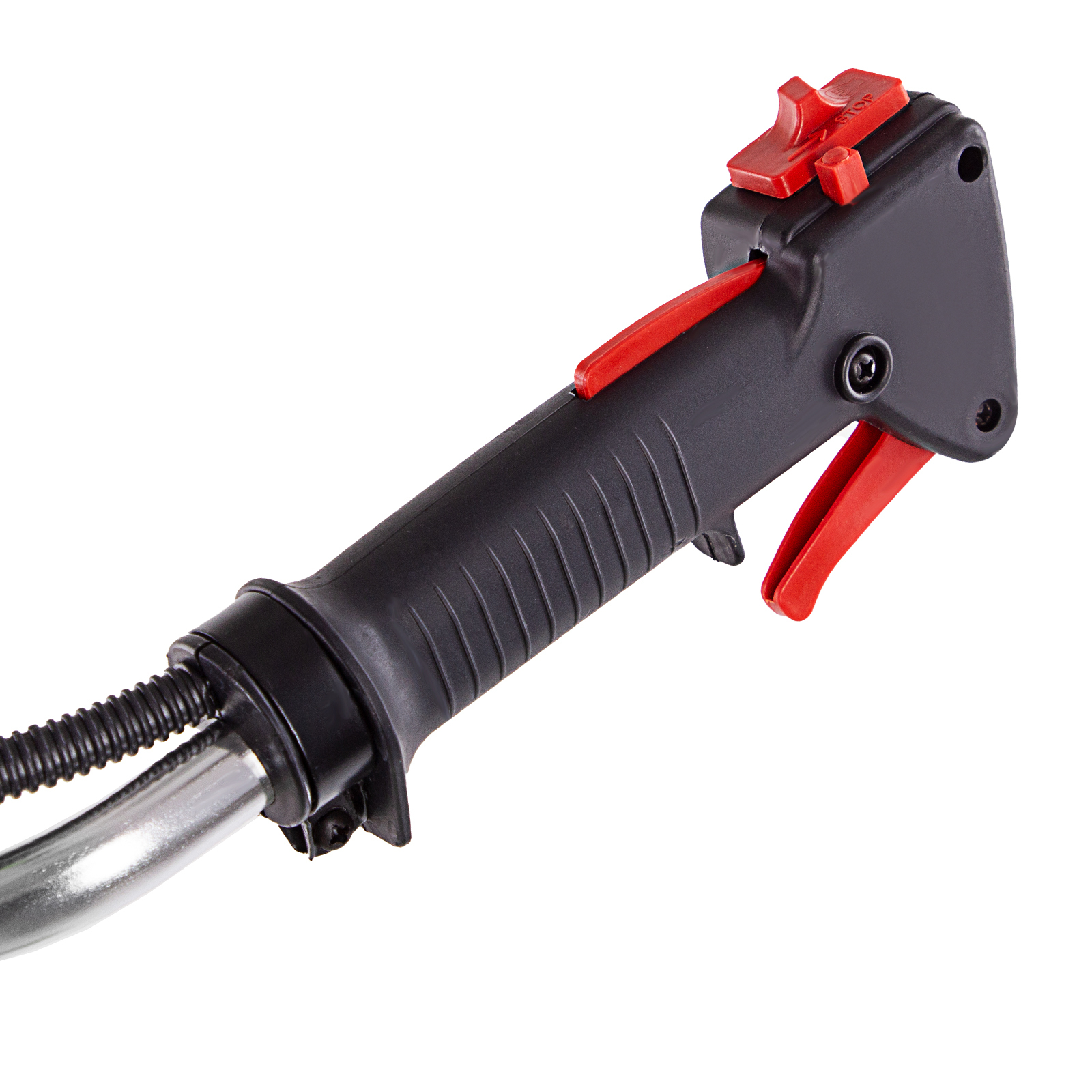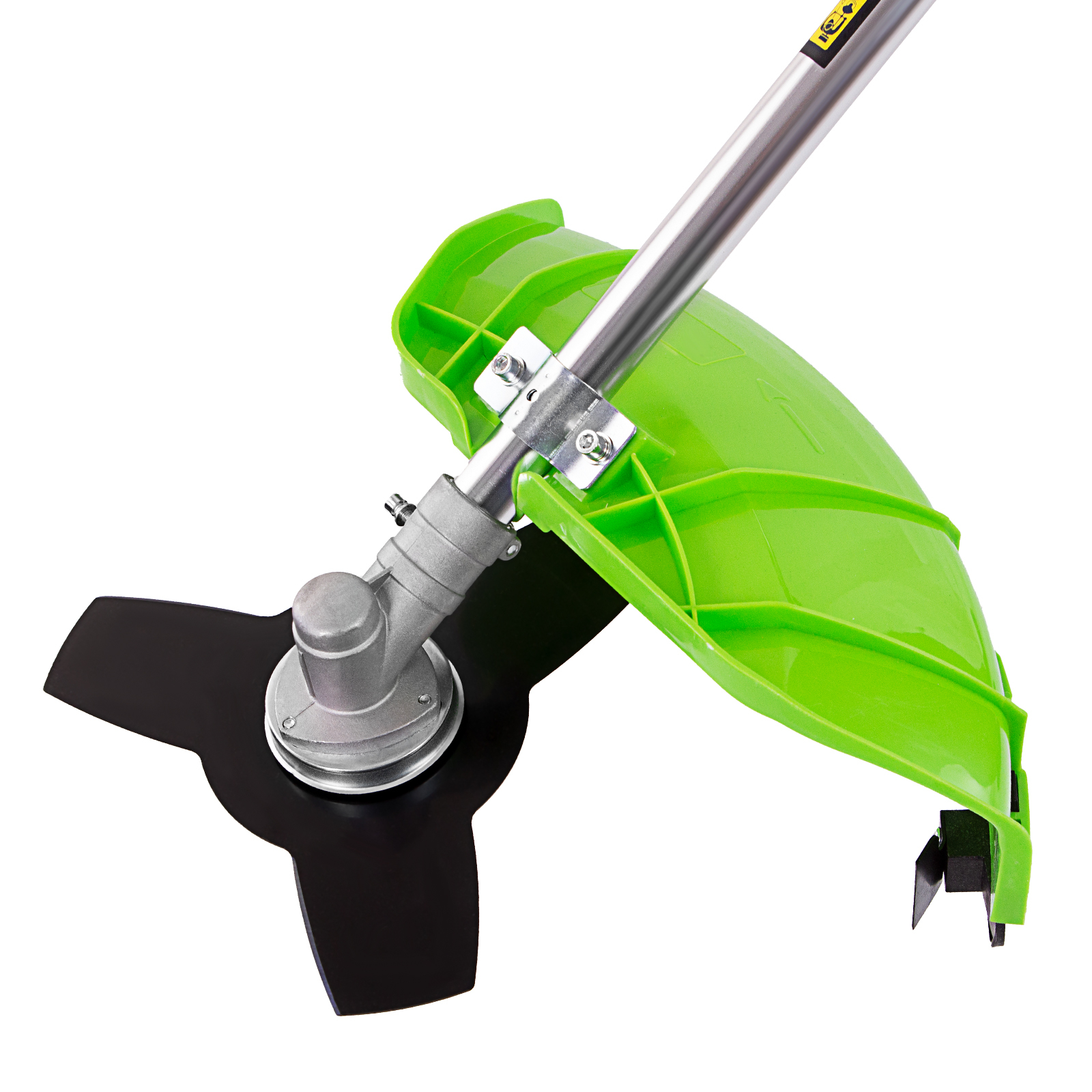 - Защита от летящей травы и веток — на штанге надежно закреплен прочный пластиковый кожух.