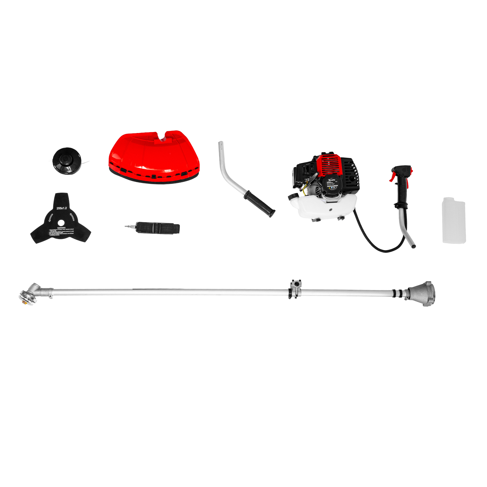 Двигатель с правой рукояткой - 1 штЛевая рукоятка - 1 штШтанга - 1 штЗащитный кожух с ножом - 1 штКронштейн защитного кожуха - 1 штКатушка с леской - 1 штНож трехлопастной - 1 штДозатор для приготовления смеси - 1 штРемень плечевой - 1 штКорпус сцепления с крепежом - 1 штРедуктор с винтами - 1 штУзел крепления рукояток с крепежом - 1 штУзел подвеса ремня - 1 штСвечной ключ - 1 штИмбусовый ключ Н5 - 1 штИмбусовый ключ Н6 - 1 штБолт M6×20 - 4 штБолт M5×15 - 2 штГайка M5 - 2 штХомут - 2 штСоединительная муфта - 1 штКоннектор штанги - 1 шРуководство по эксплуатации с гарантийным талоном - 1 шт