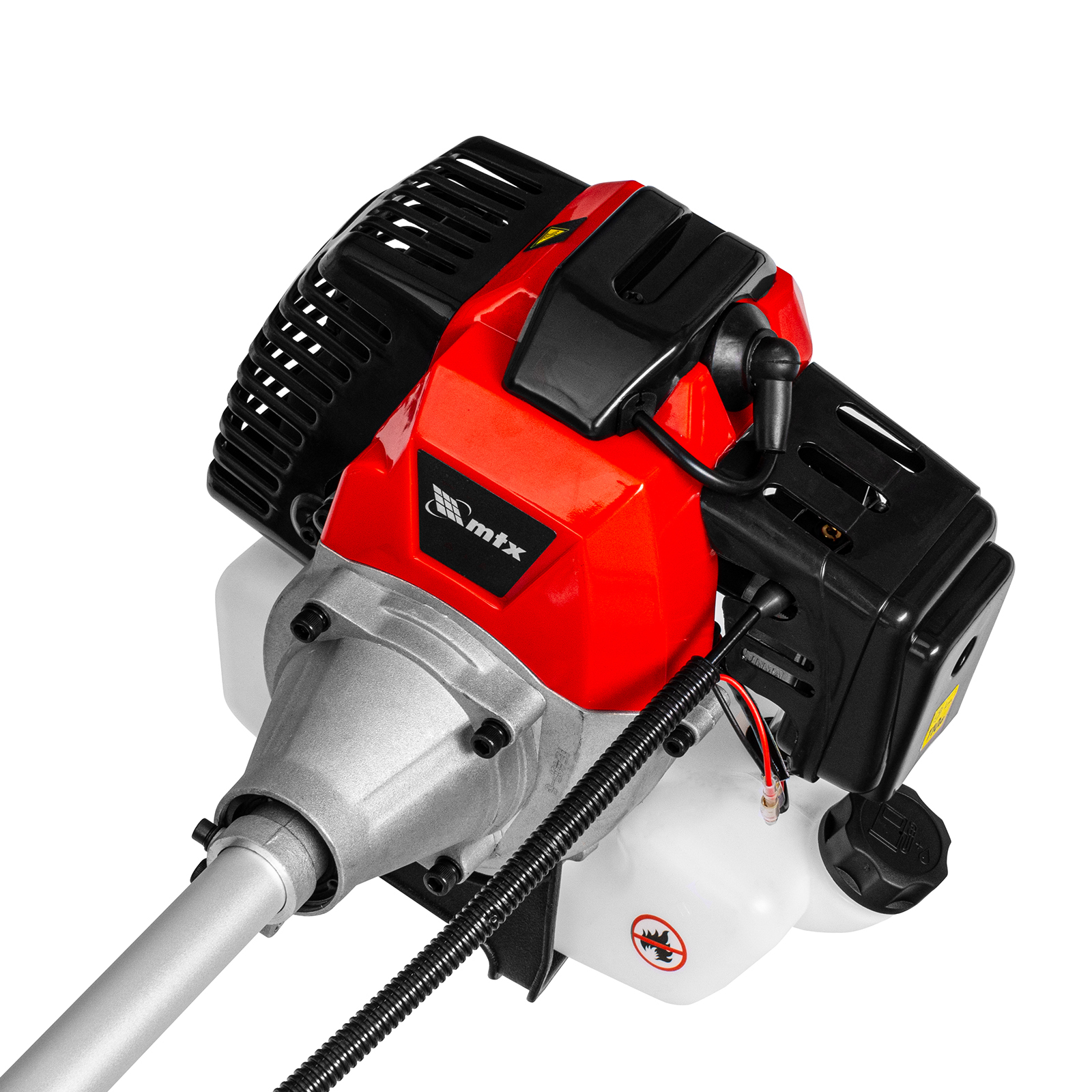 Бензиновый триммер MTX MT-43 962335 с неразъемной штангой и двигателем объемом 43 см3 предназначен для стрижки и скашивания травы, формирования границ газонов. Удобен для обработки участков вдоль стен и оград, вокруг деревьев. В качестве режущих элементов используются катушка с леской диаметром 3 мм и трехлопастный нож, благодаря которым триммером можно скашивать даже густую траву и сорняки с толстыми стеблями. Ширина скашивания леской составляет 420 мм, ножом — 255 мм, что позволяет эффективно справляться с работой. Триммер незаменим для ухода за дачным участком.