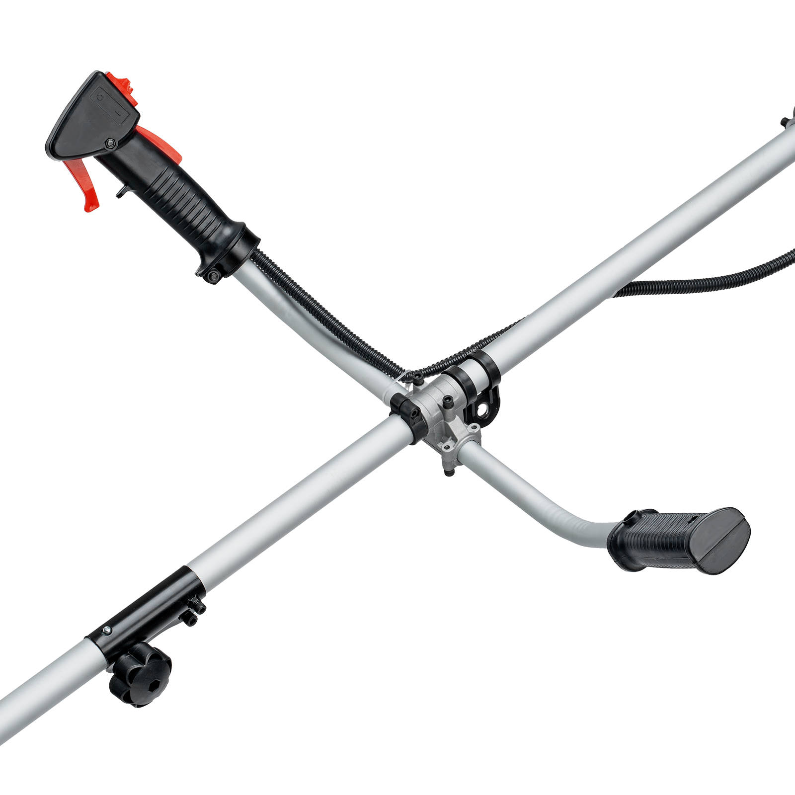 - Комфортная работа — благодаря рукояткам велосипедного типа, плечевому ремню и оптимизированной антивибрационной системе триммер удобно удерживать и направлять.