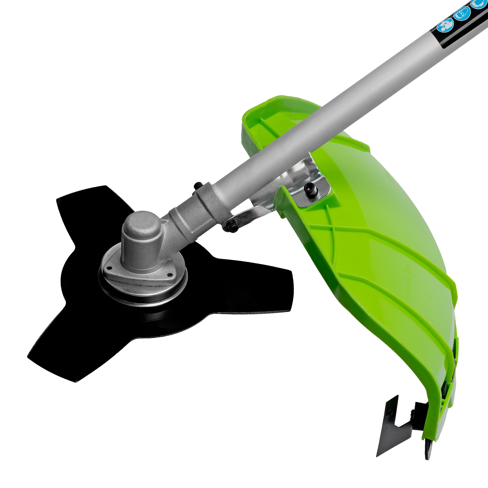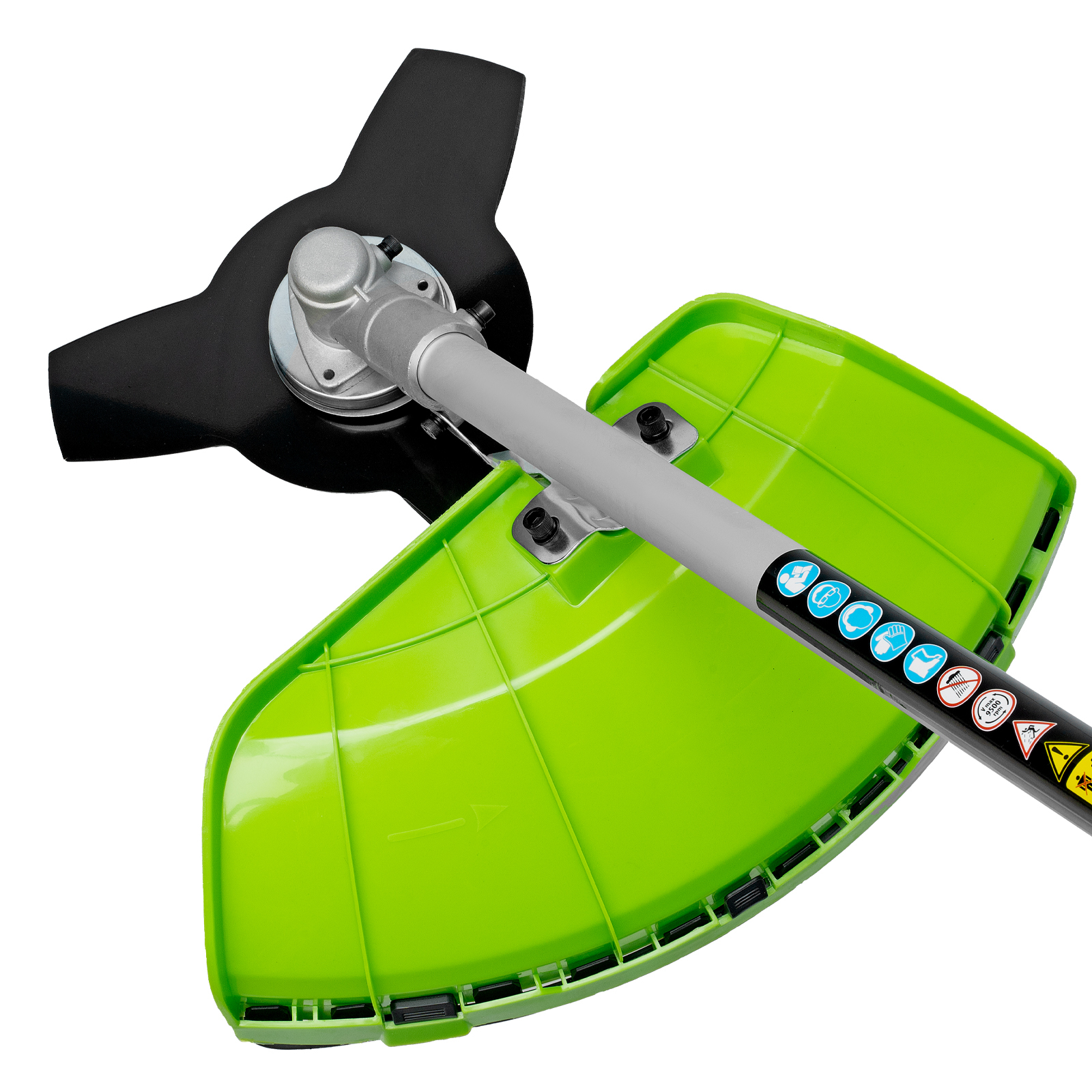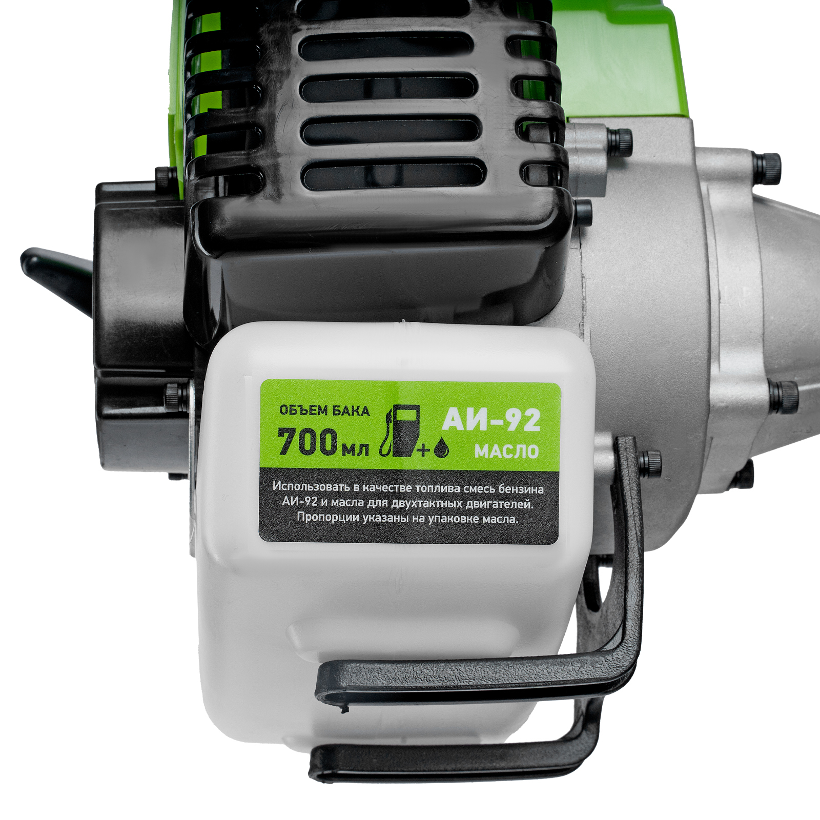- Полуавтоматическая подача лески — достаточно слегка ударить кнопкой катушки о землю, не останавливая двигатель.