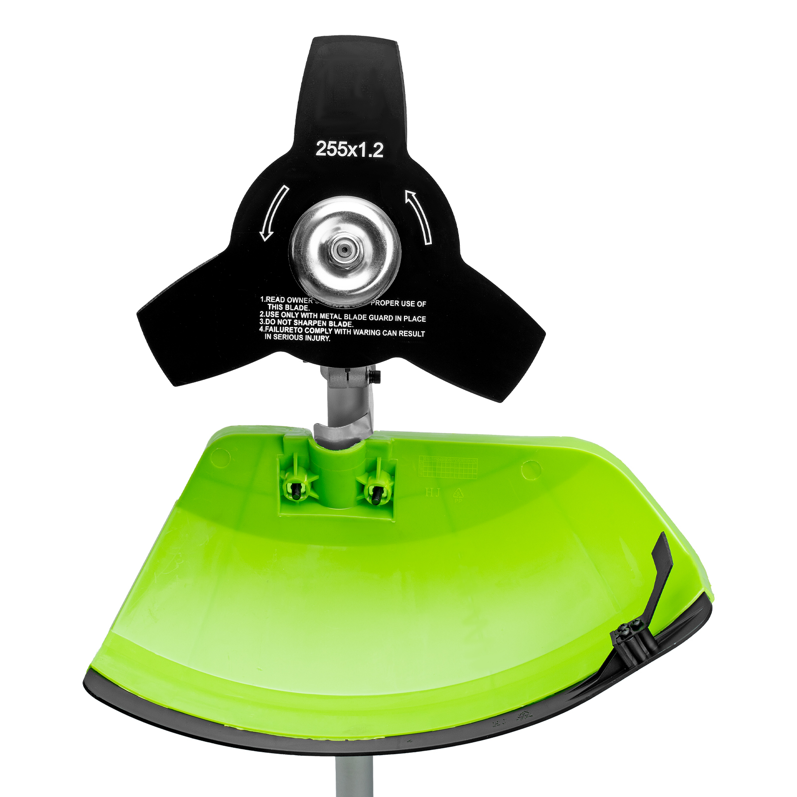 - Безопасность пользователя — защитных кожух предотвращает вылет срезанной травы и веток.
