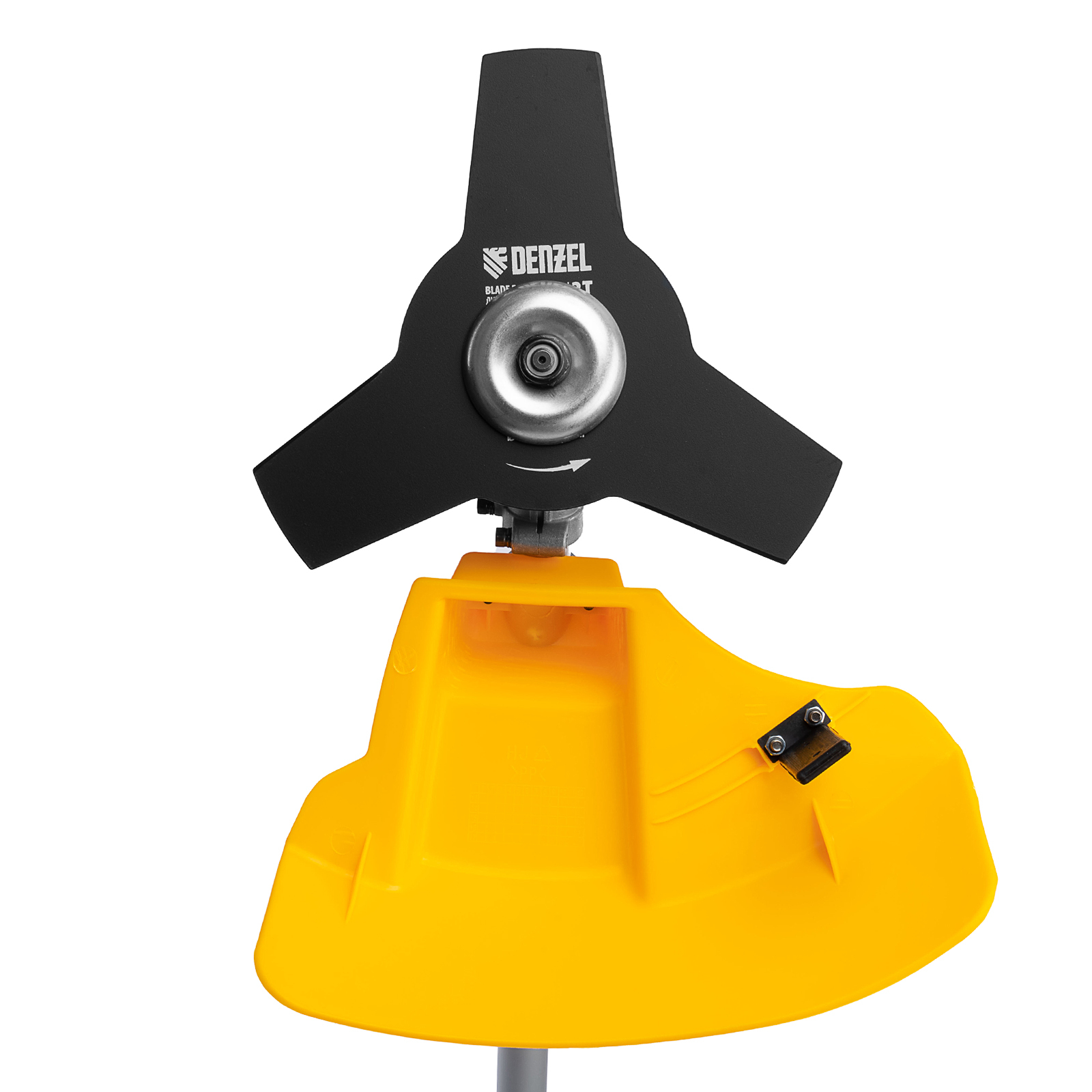 - Дополнительные возможности — можно приобрести и установить на триммер диск Denzel 96323 с шириной скашивания 230 мм для быстрого удаления растительности с жесткими стеблями (полыни, крапивы, лебеды), 96328 для скашивания молодых побегов кустарника диаметром до 3 мм, 96340 для срезания борщевика, кустарника и молодых побегов деревьев с диаметром стволов до 10 мм.