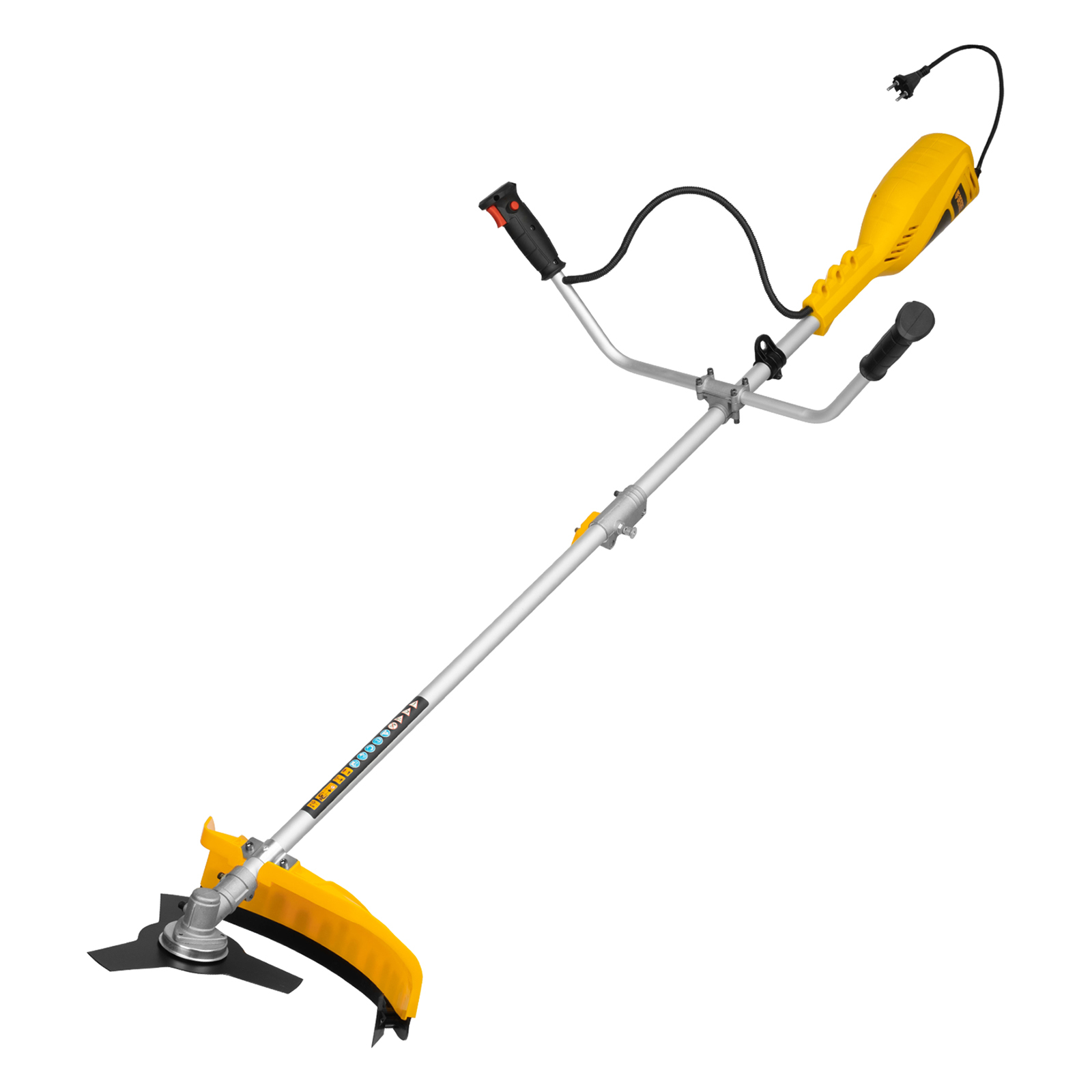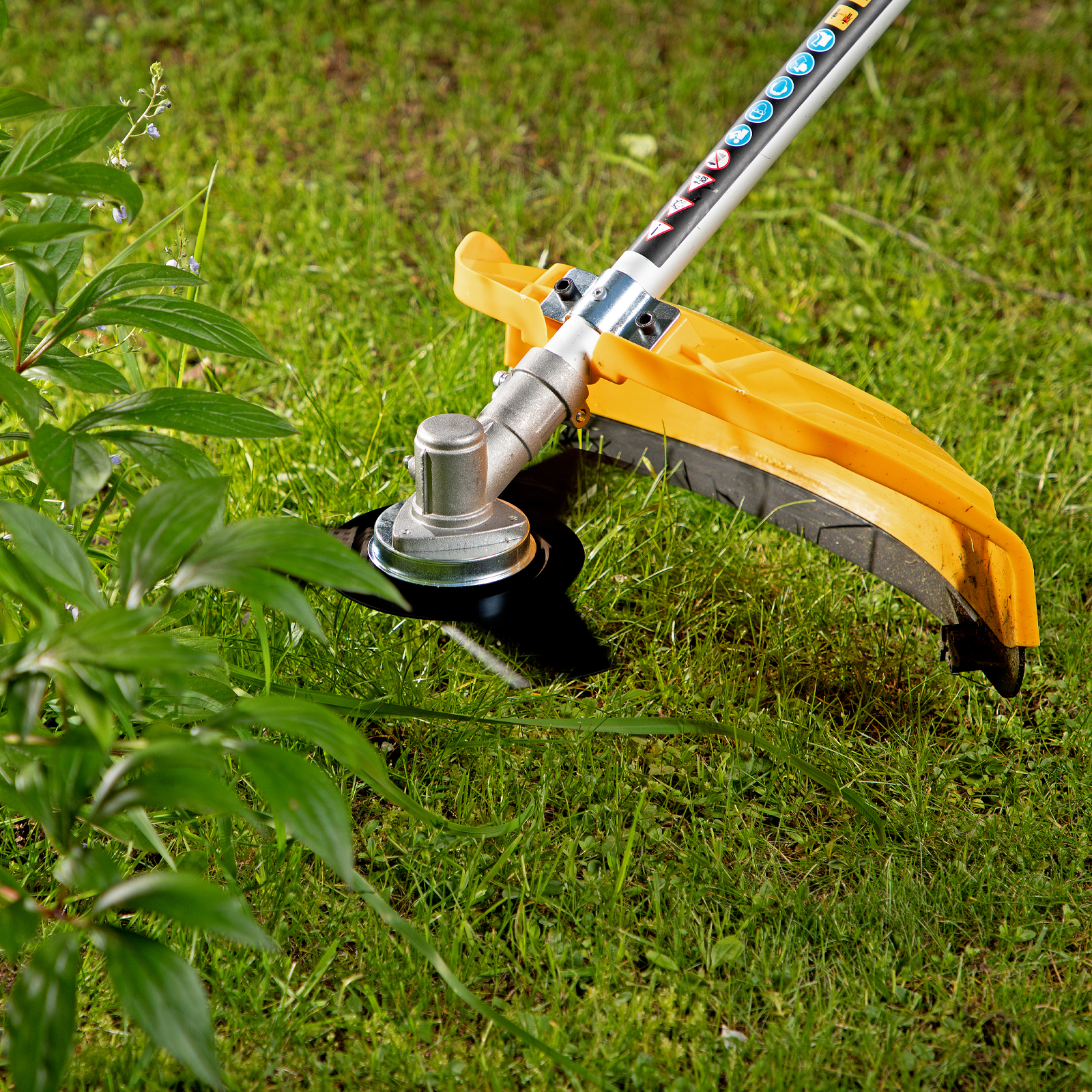 - Удобное управление — благодаря плечевому ремню, регулируемому кольцу крепления и велосипедным рукояткам триммер легко удерживать и направлять.