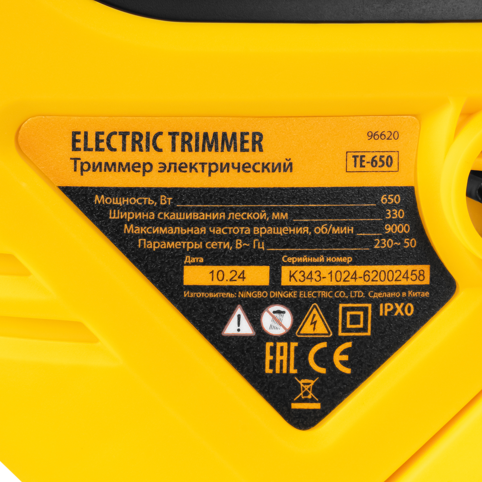 Электрический триммер Denzel TE-650 96620 мощностью 650 Вт обеспечивает вращение оснастки со скоростью 9000 об/мин и ширину скашивания 330 мм. Идеально подходит для скашивания газонной травы на небольших участках и в местах, недоступных для колесных газонокосилок. Благодаря нижнему расположению двигателя триммер хорошо сбалансирован, им просто и комфортно работать. Он будет полезен владельцам дачных участков. ,Электротриммер не требует специальной подготовки и сложного технического обслуживания: не нужно смешивать с маслом бензин, сливать топливо, прогревать двигатель.