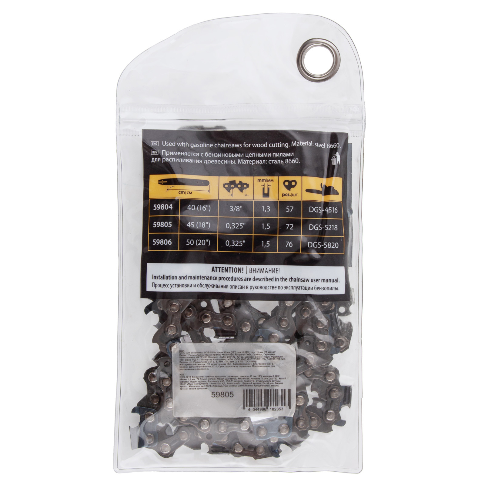 Цепь для бензопилы DGS-5218, шина 45 см (18") шаг 0.325", паз 1.5 мм, 72 звена Denzel