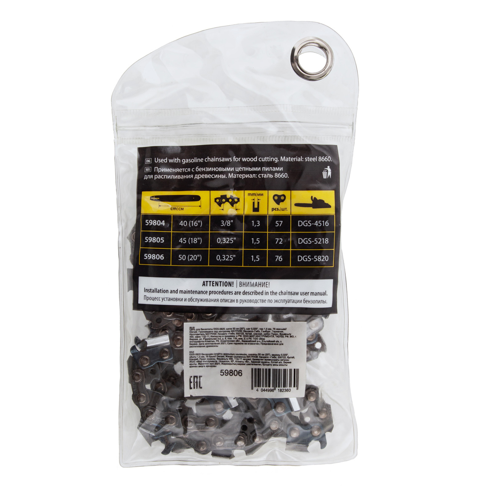 Цепь для бензопилы DGS-5820, шина 50 см (20"), шаг 0.325", паз 1.5 мм, 76 звеньев Denzel