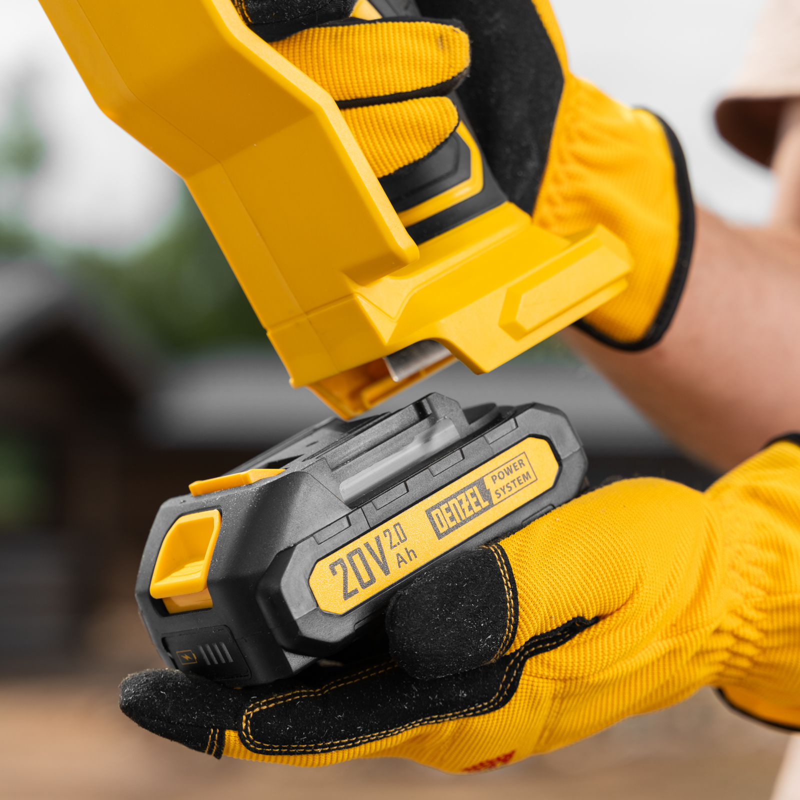 - Универсальность — аккумулятор совместим со всеми инструментами единой платформы Denzel Power System 20V.