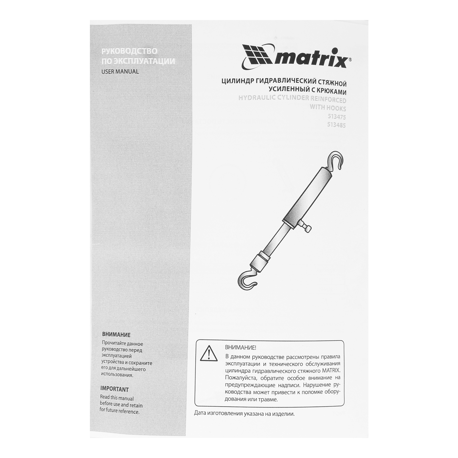 <p>Усиленный стяжной гидравлический цилиндр Matrix 513485 с крюками — устройство обратного действия, позволяющее прикладывать стягивающее усилие 10 т. Является рабочим элементом инструмента для восстановления геометрии деформированных деталей автомобильного кузова. Будет полезен на предприятии автосервиса, а также для самостоятельного ремонта автомобиля.</p><h2>Преимущества</h2><ul><li>Надежность — корпус с двумя усиленными крюками устойчив к повреждениям и выдерживает значительные нагрузки.</li><li>Простая эксплуатация — для использования стяжного цилиндра не требуются особые навыки и специализированное обслуживание.</li><li>Удобное хранение и транспортировка — гидроцилиндр весит 8,25 кг, его длина составляет 665 мм.</li></ul>