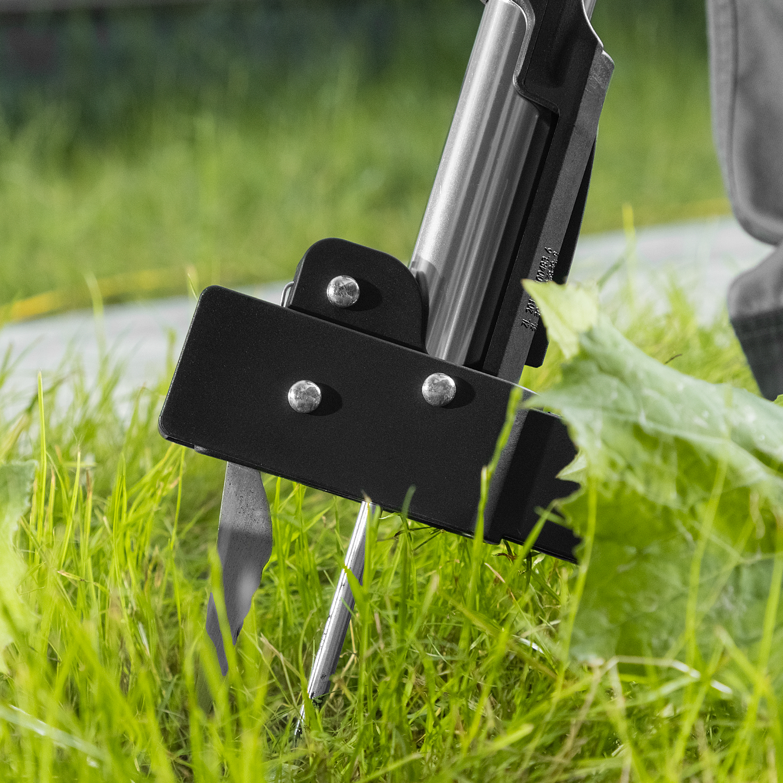- Упор для ноги, расположенный в основании черенка, облегчает введение игл в грунт.