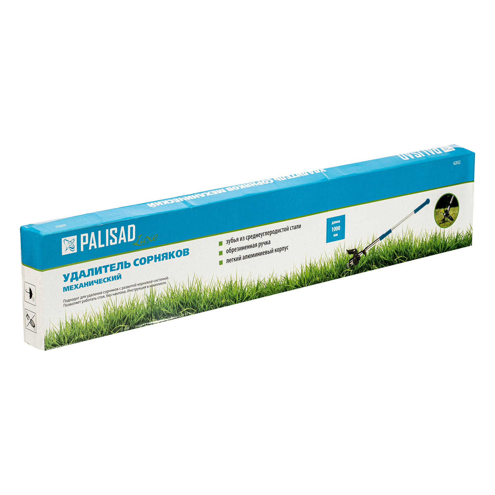 <p>Механический удалитель сорняков Palisad LUXE 62032 длиной 1000 мм, с алюминиевым корпусом, — незаменимый инструмент для садоводов и огородников. С его помощью можно избавиться от одуванчиков, звездчатки, мятлика, молодого борщевика и других сорняков с мощной корневой системой. Удалитель позволяет полностью извлекать корни растений и значительно облегчает работу.</p><h2>Преимущества</h2><ul><li>Рукоятка из алюминиевого сплава и закаленная рабочая часть из нержавеющей стали устойчивы к повреждениям, коррозии и воздействию ультрафиолета.</li><li>Упор для ноги, расположенный в основании черенка, облегчает введение игл в грунт.</li><li>ПВХ-накладка на рукоятке обеспечивает надежный хват, что повышает комфортность работы.</li></ul>