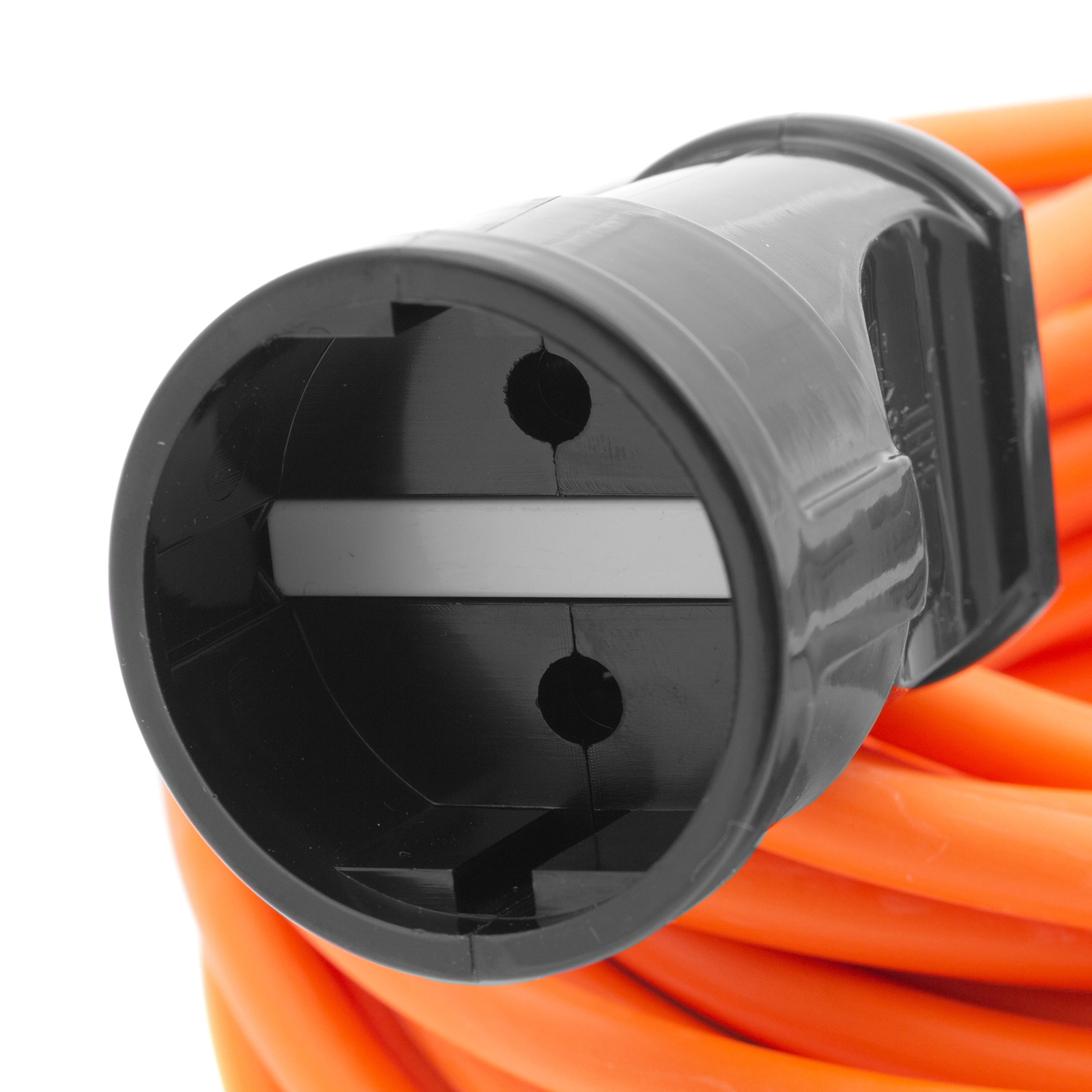 - Прочность и долговечность — корпус розетки и вилки выполнен из негорючего пластика.