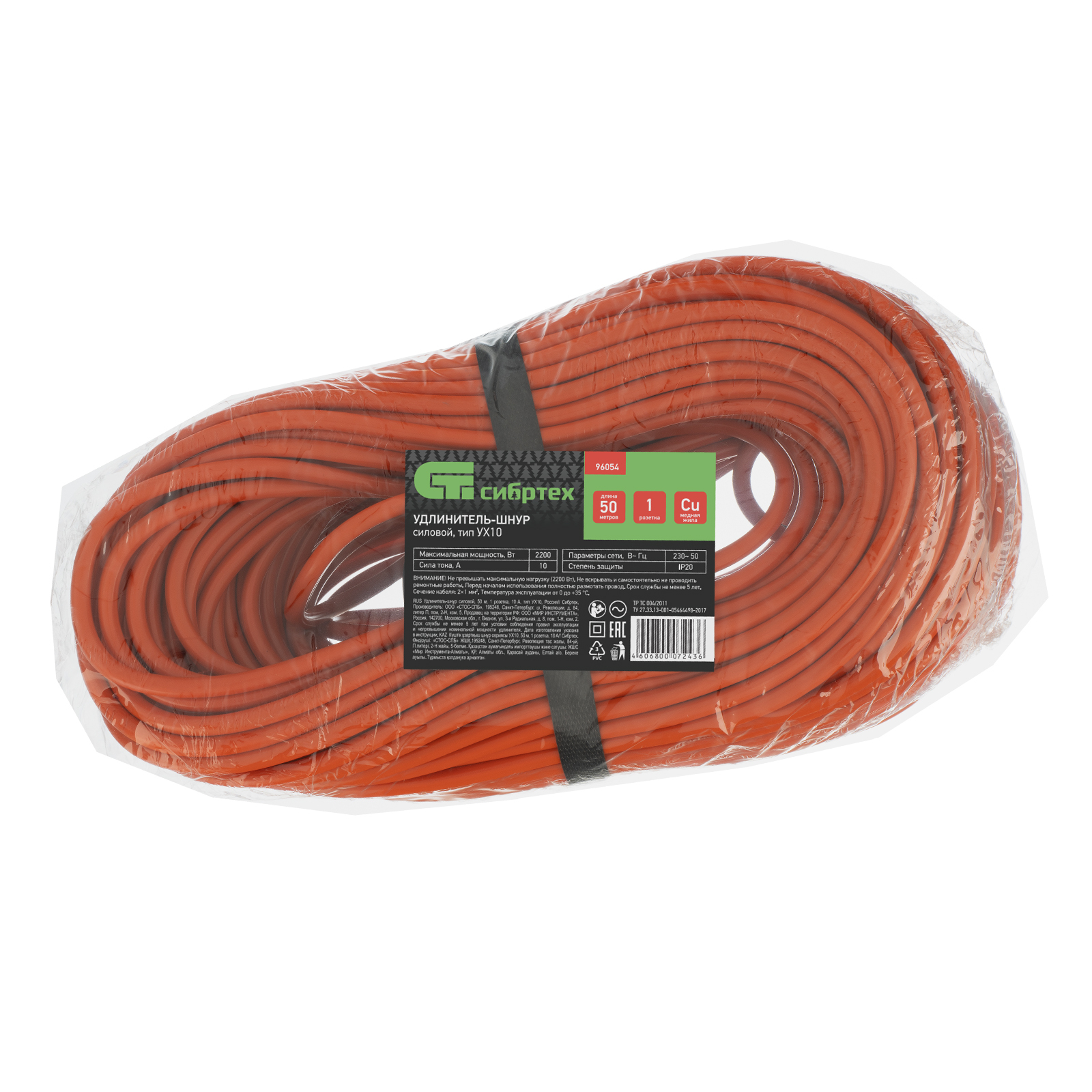 Удлинитель-шнур силовой 50 м, 10A, тип УХ10, 1 розетка, Сибртех