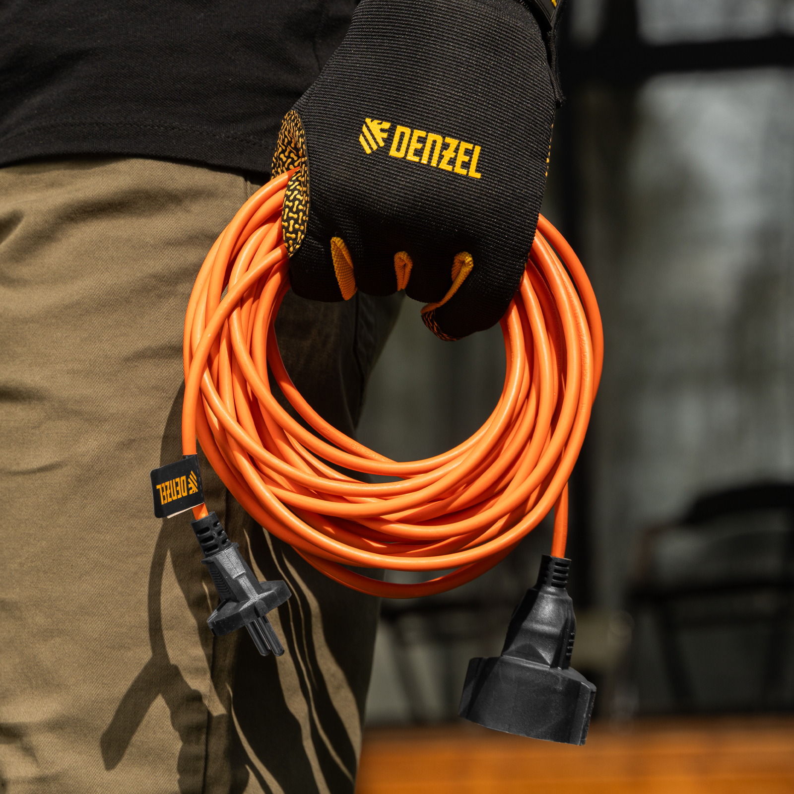 Силовой удлинитель-шнур Denzel Garden Series 37401 с кабелем ПВС сечением 2 x 1 мм, и 1 розеткой без заземления, позволяет подключать приборы к электросети на расстоянии до 10 м от стационарного источника питания. Максимальная мощность потребителя составляет 3500 Вт при полностью размотанном кабеле и 1750 Вт — при смотанном. Удлинитель может использоваться при температуре от +5 до +35 °C. Пригодится дома, на даче, в гараже.