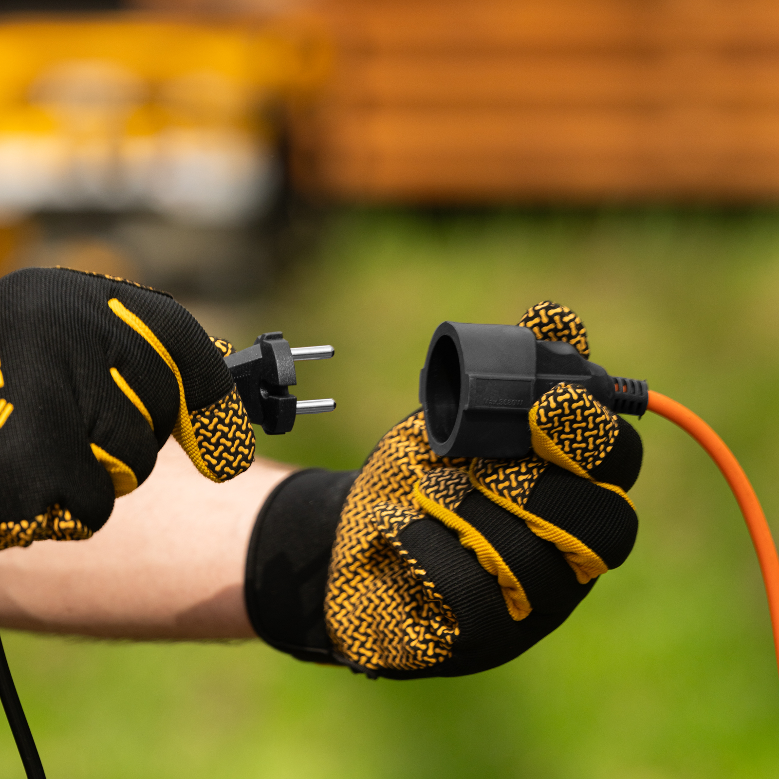 - Хорошая видимость — удлинитель ярко-оранжевого цвета заметен среди прочих предметов и строительного мусора.