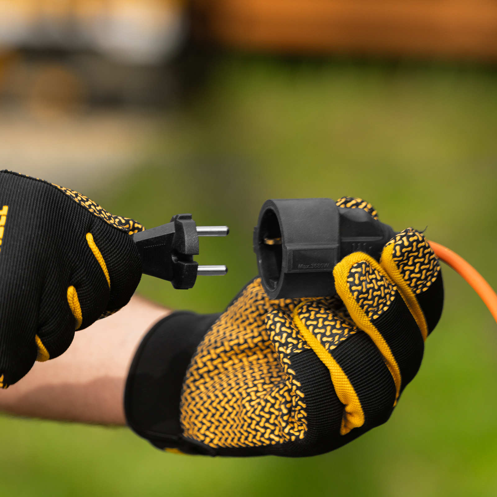 - Хорошая видимость — удлинитель ярко-оранжевого цвета заметен среди прочих предметов и строительного мусора.
